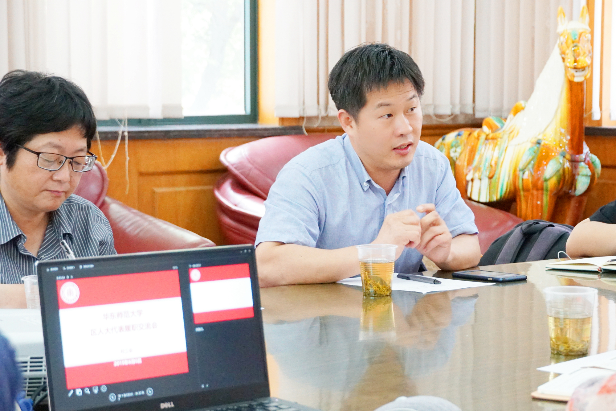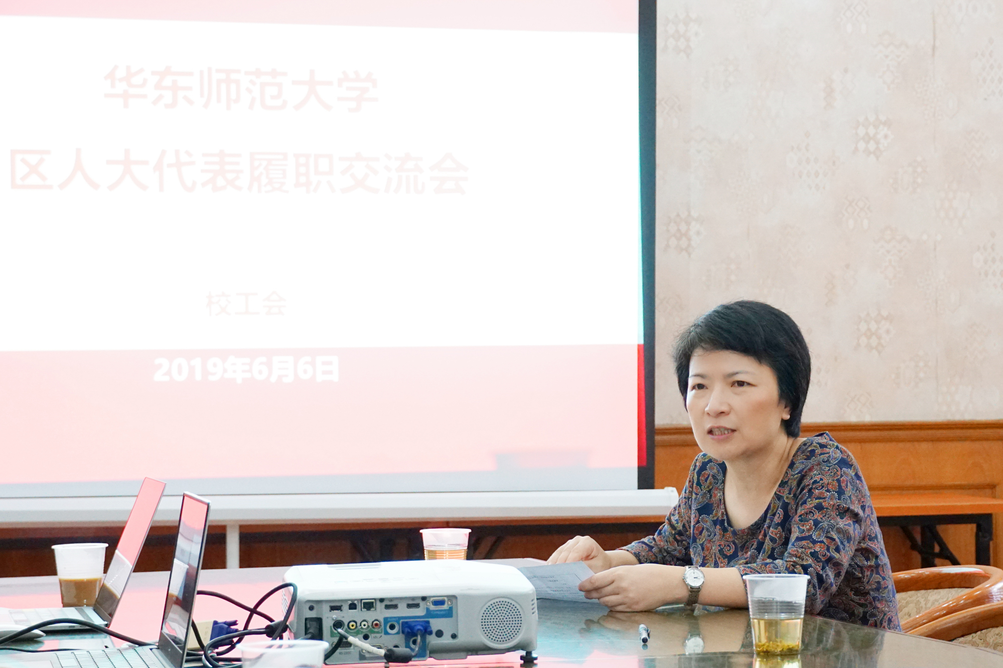 与会代表逐一围绕当选区人大代表以来的遵纪守法情况、人大会议的出席率、闭会期间的活动、提高履职能力、密切联系群众和存在的不足等方面进行了交流与分享。三年来,代表们以高度的责任感认真履行职责,积极参加“两代表一委员下社区”活动和选民接待日活动,深入基层,认真倾听群众呼声、积极反映群众诉求。此外,他们通过参加定期组织的区人大代表履职培训活动,全面了解代表职责、快速转换代表角色,不断增强代表的履职能力。我校普陀区人大代表们在调研走访近200多位选民的基础上提交的《环华师大周边环境的调研报告》引起了区里极大关注。我校闵行区人大代表每年都在听取选民意见的基础上向区人大提交正式调研报告,先后提出了13份涉及闵行校区周边交通安全等方面的书面意见和建议,绝大多数都得到顺利解决。