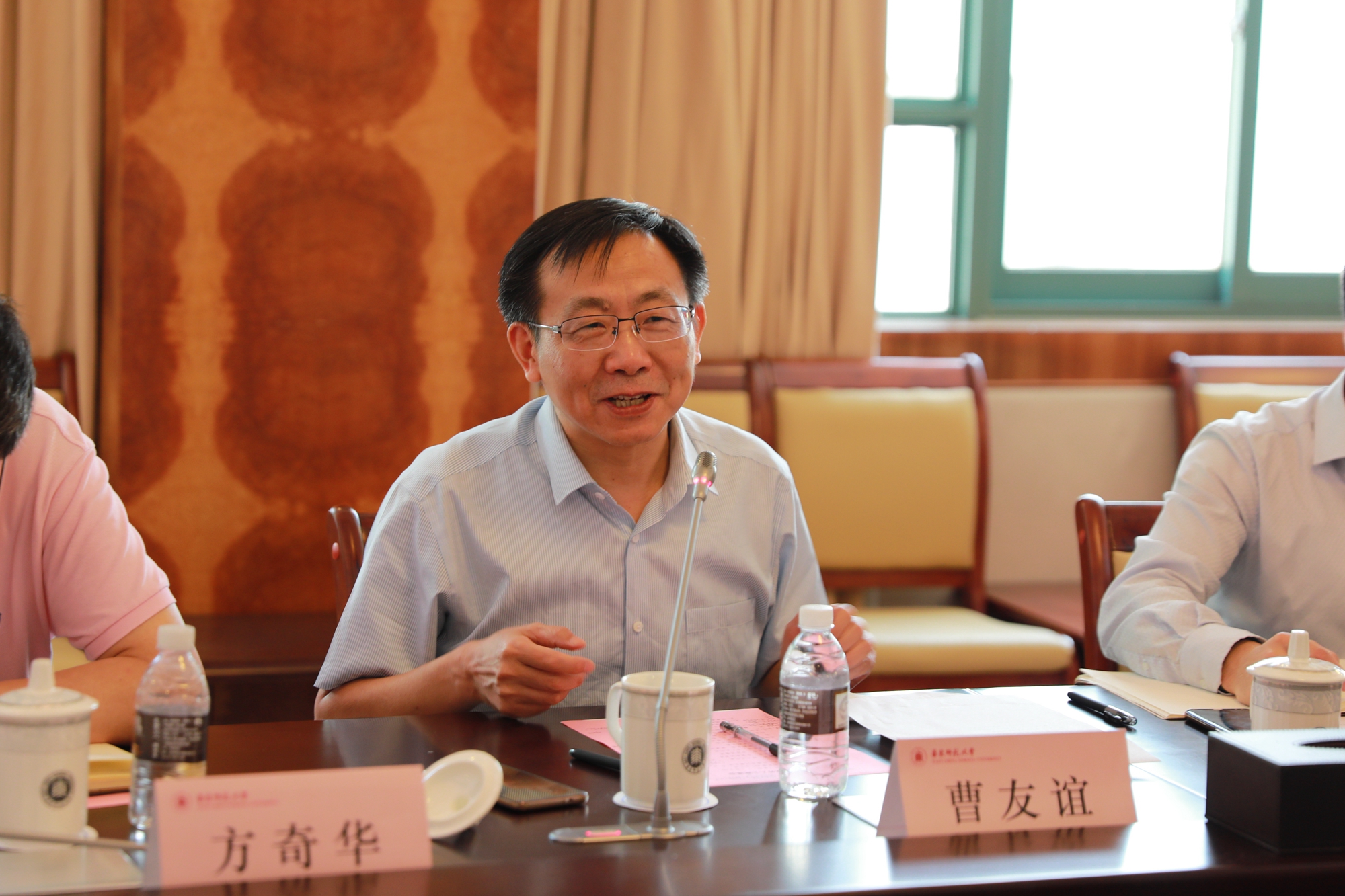 6月11日上午,我校党外人士座谈会在中山北路校区逸夫楼召开。校党委副书记、纪委书记曹友谊,校纪委副书记、监察处处长俞黎阳,校党委统战部部长方奇华、副部长王新燕等出席会议,来自学校7个民主党派基层组织的代表和无党派人士代表参加了座谈。会议由曹友谊主持。