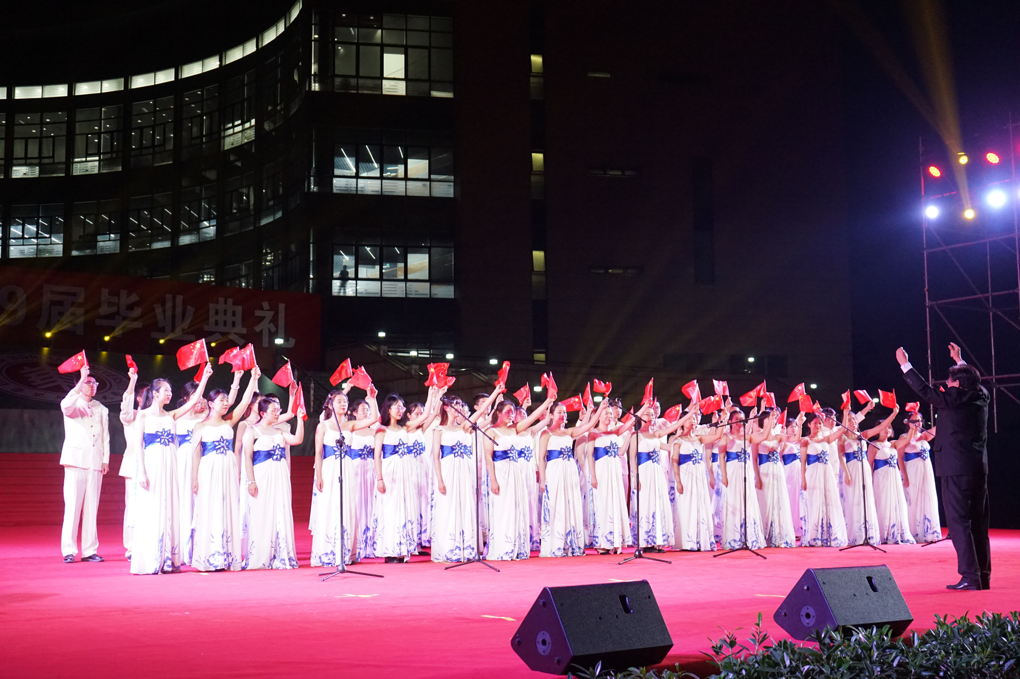 在晚会的最后,校艺术团带来的合唱曲目《离别的季节》和《歌唱祖国》,为毕业生们再道一声“再见”。
