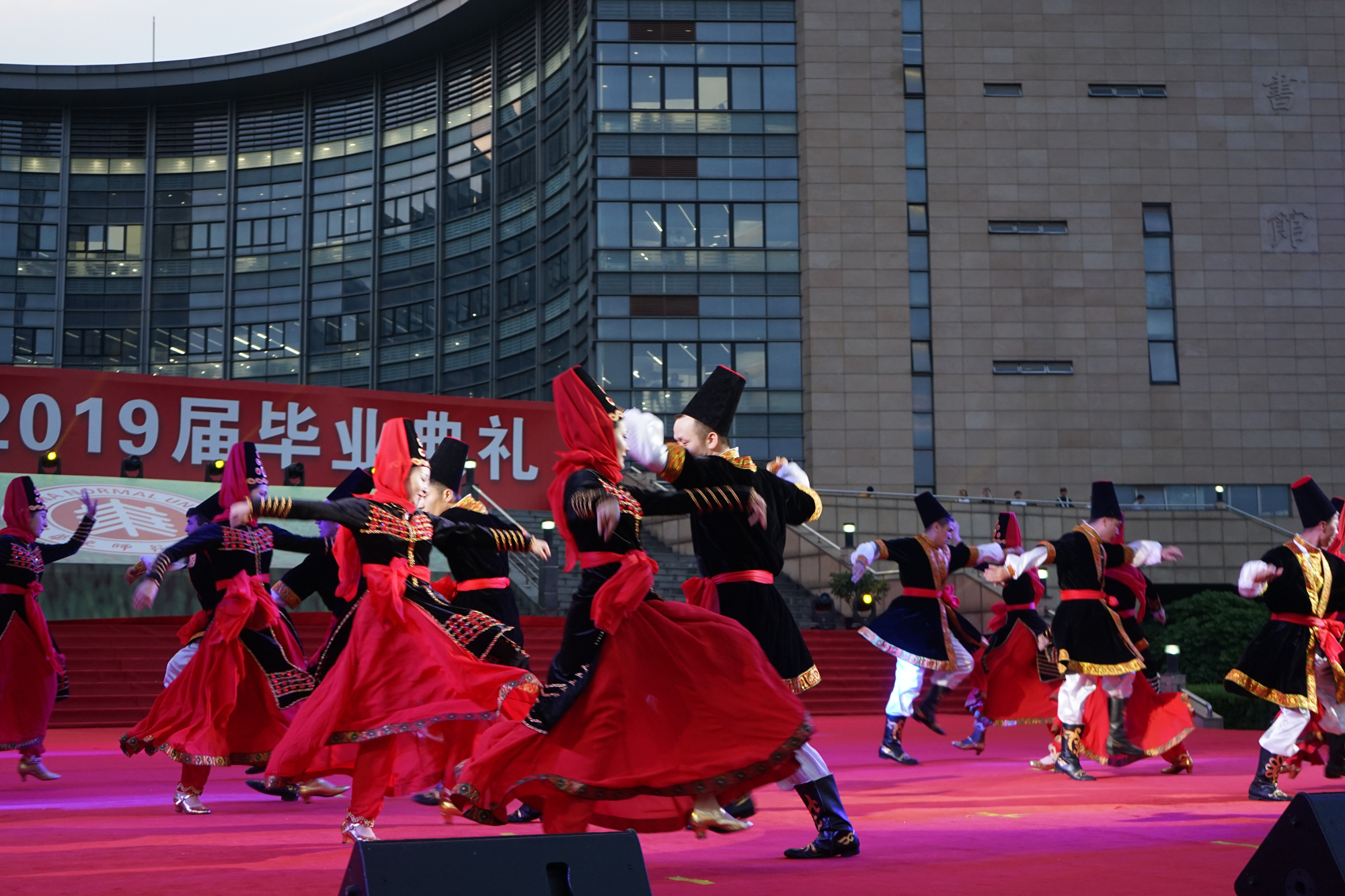 节拍律动是青春的跳动,步伐舞姿是青春的舒展,镜影舞社的同学们给毕业生带来一场轻松动感的现代舞《Senorita》。随后的歌舞串烧《盛世中华》中,博格达兴趣小组的同学们展示了维吾尔舞蹈《刀郎舞》,经管书院的王毓萱同学和传播学院的魏宇鑫同学带来的《梨花·送》中传统京剧与现代rap碰撞出了火花,冈拉梅朵藏文化社的同学们为师大学子送上了具有淳朴真诚魅力的藏族舞《扎西德勒》。精彩的歌舞表演将晚会氛围带上第一个高潮。