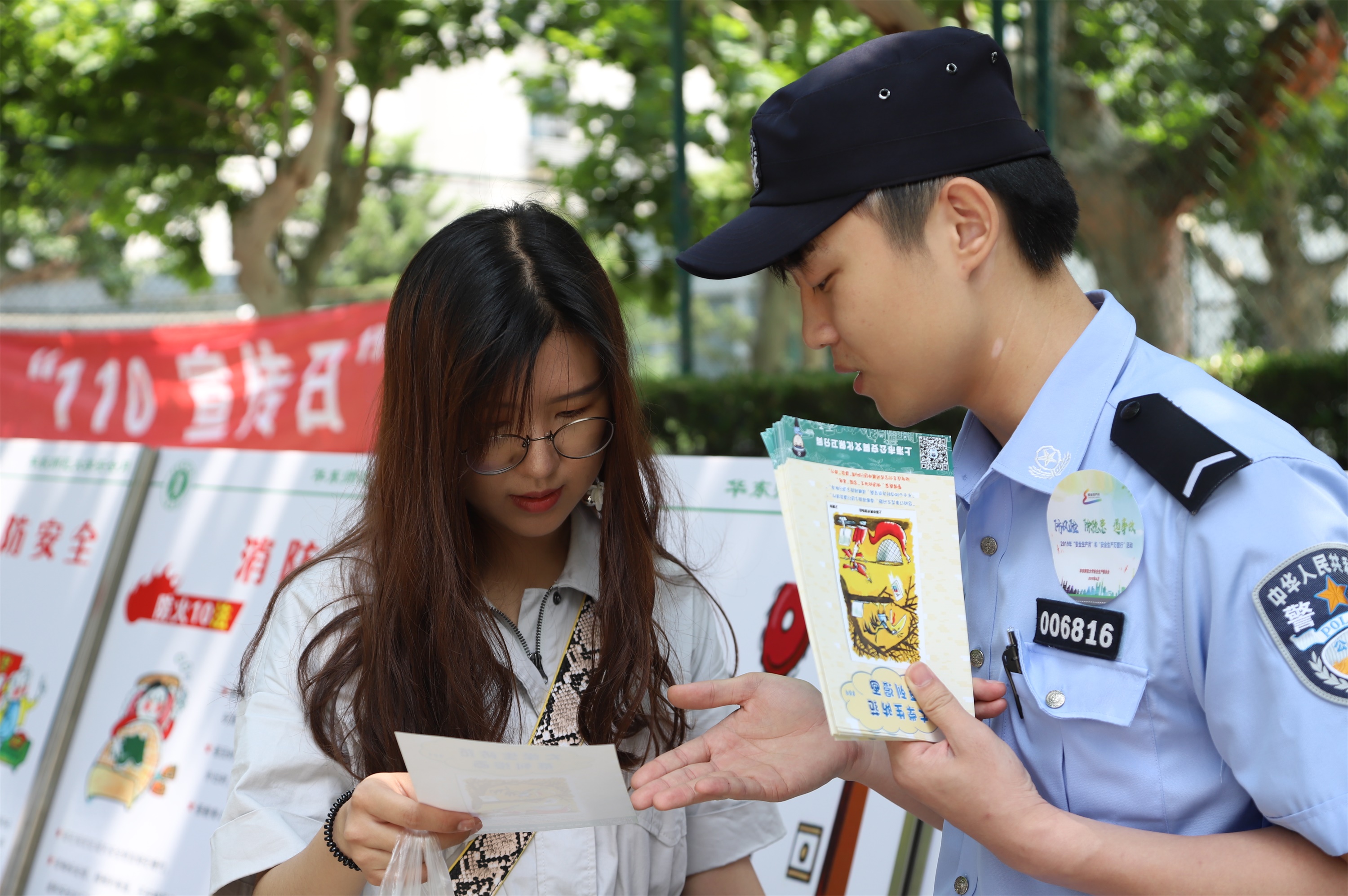 志愿者们为参与活动师生发放了安全紧急信息报送与现场处置、实验室安全、防范诈骗、消防等宣传折页、光盘等宣传品。《安全紧急信息报送与现场处置》宣传折页,介绍了我校安全管理职责部门分工、紧急情况报告处置程序、经办部门及联系方式等内容,是一份非常实用的校园安全小贴士。