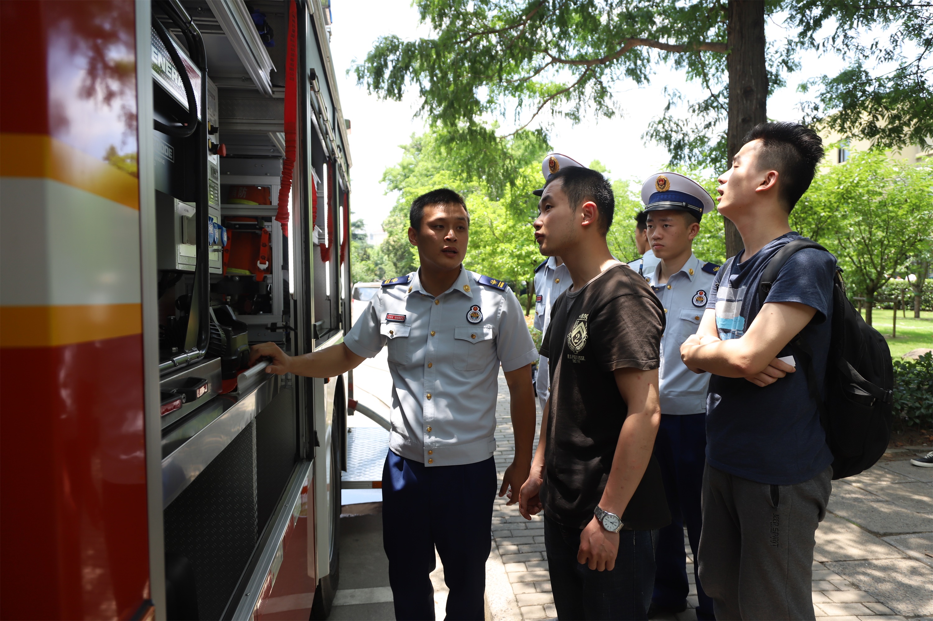 学校所在地安全专业部门对活动的开展给予了重要的指导。上海市公安局文化保卫分局沪西派出所、闵行派出所负责人及多名民警,综合性消防救援队伍普陀区真如中队、闵行区吴泾中队负责人及多名队员,现场进行专业指导和帮助,接受师生咨询、指导消防装备体验、发放安全宣传品,营造了共同维护校园安全的浓厚氛围。