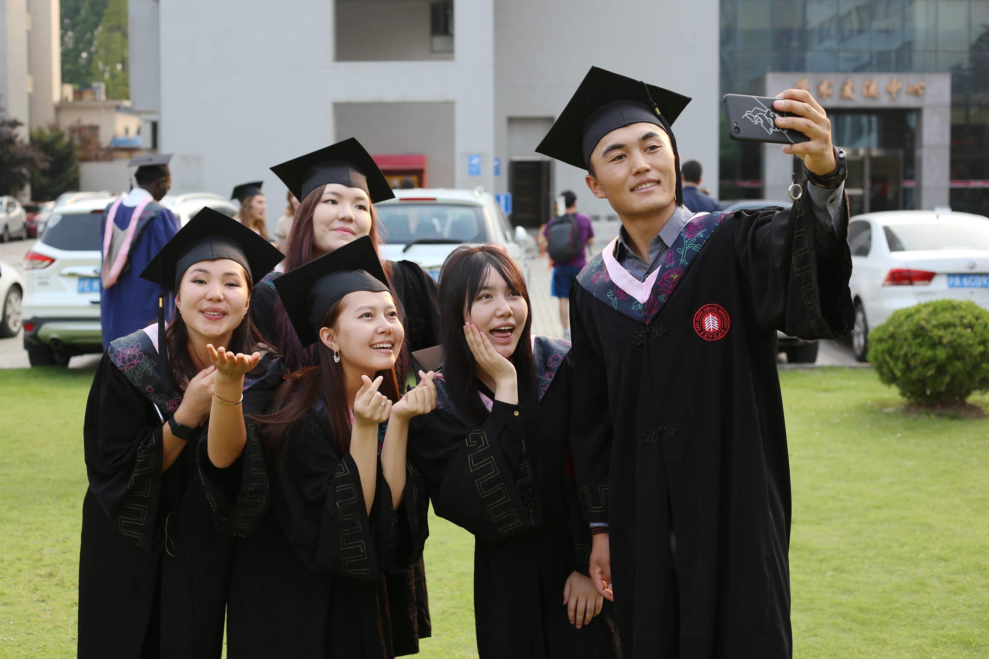 去年毕业典礼上的网红“开水哥”,来自意大利的王小龙,目前在意大利对外贸易委员会上海代表处工作。在华东师大学习期间,他参加了2017年江西婺源“大爱无疆”支教活动,他说离别时学生流泪不舍的画面令他印象深刻。他还是一名优秀前锋,所在球队连续两年代表华东师大在部属师范大学国际学生足球联赛中获得冠军。