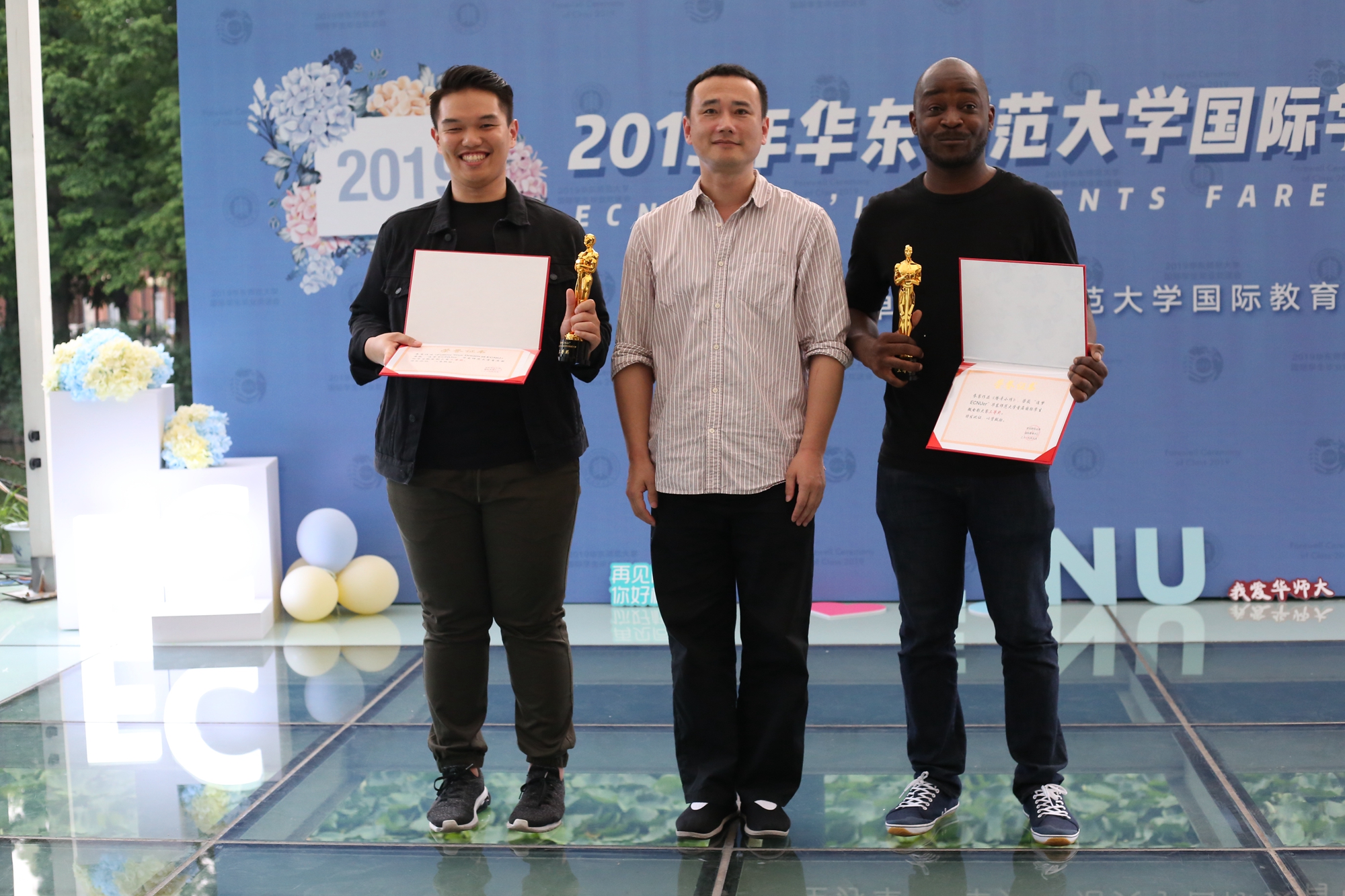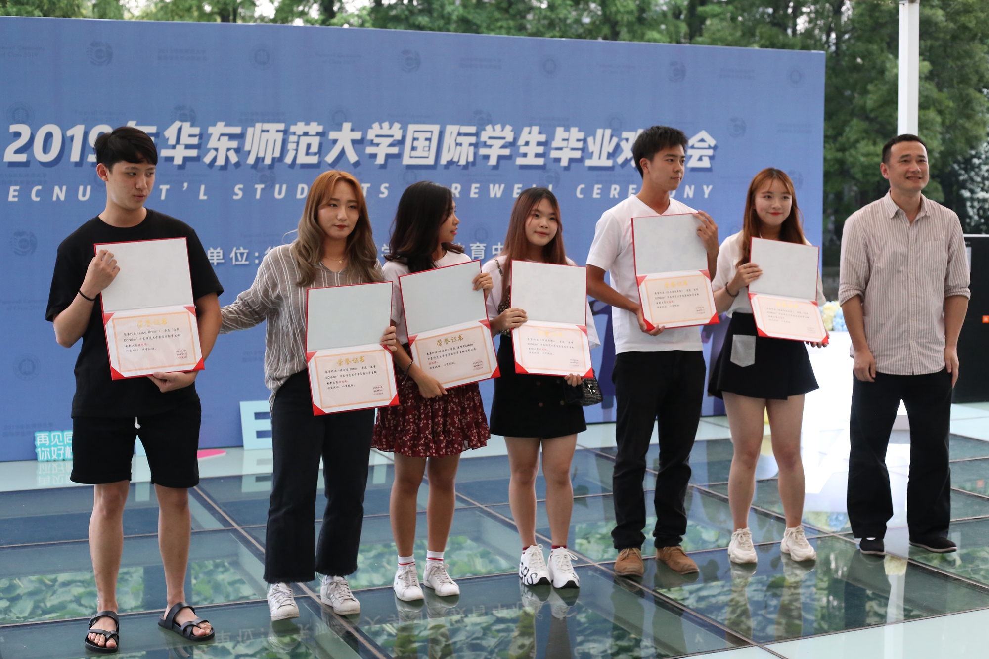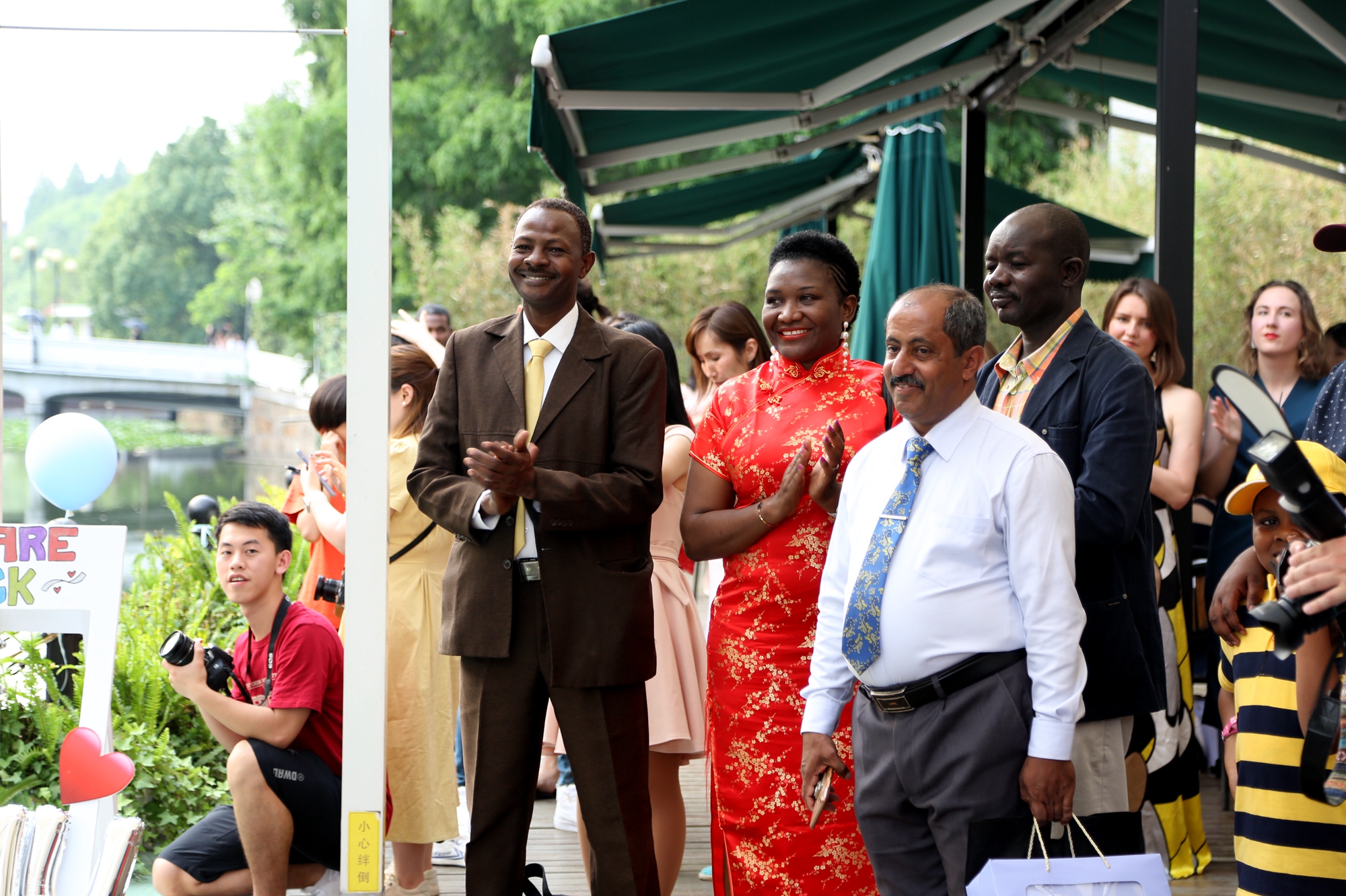 傍晚时分,留学生毕业欢送会在丽娃河边拉开了帷幕。伴随着留学生动情的歌声,“杰出留学生导师”“优秀留学生教务老师”、ISU国际学生联合会骨干以及“追梦ECNUer”华东师大首届国际学生微电影大赛等奖项逐一颁发。在晚宴上,大家共同观看了为毕业生精心制作的纪念视频,回顾了在华东师大的难忘岁月,度过了一个有笑有泪的夜晚。