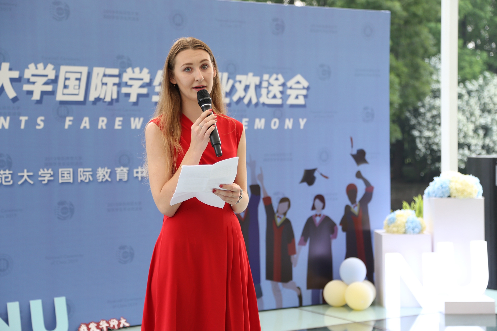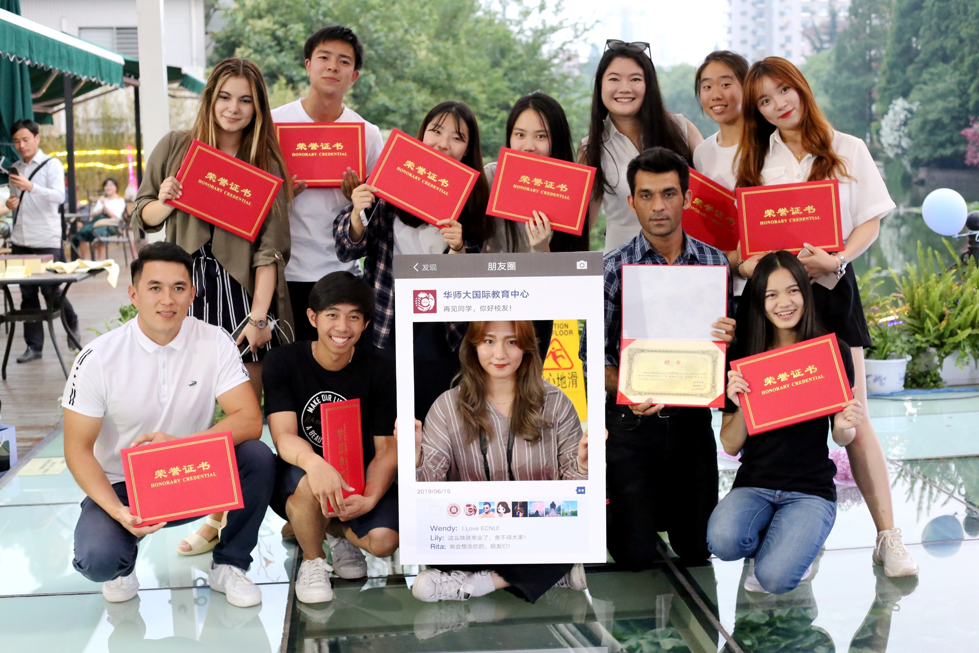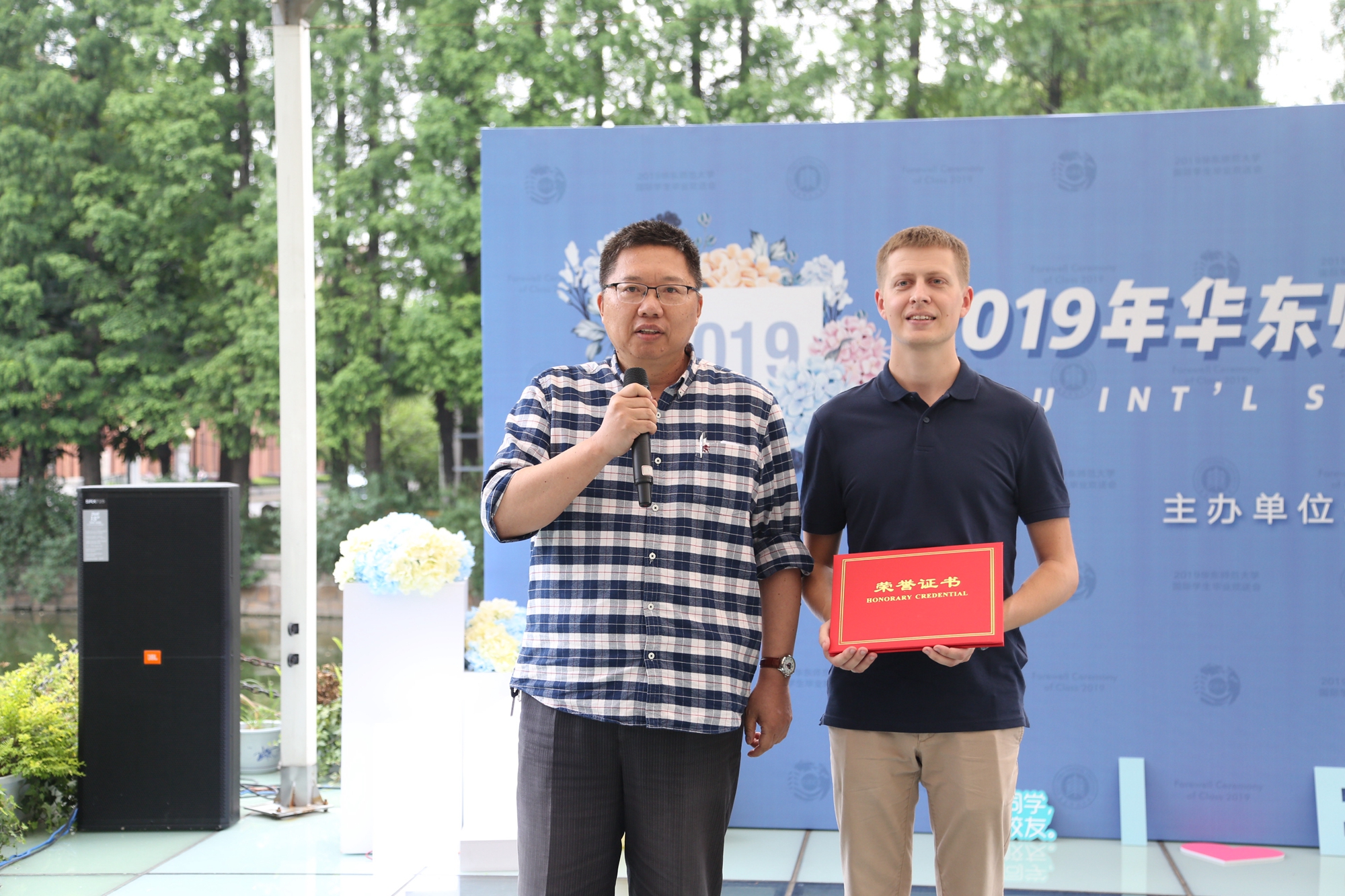 傍晚时分,留学生毕业欢送会在丽娃河边拉开了帷幕。伴随着留学生动情的歌声,“杰出留学生导师”“优秀留学生教务老师”、ISU国际学生联合会骨干以及“追梦ECNUer”华东师大首届国际学生微电影大赛等奖项逐一颁发。在晚宴上,大家共同观看了为毕业生精心制作的纪念视频,回顾了在华东师大的难忘岁月,度过了一个有笑有泪的夜晚。