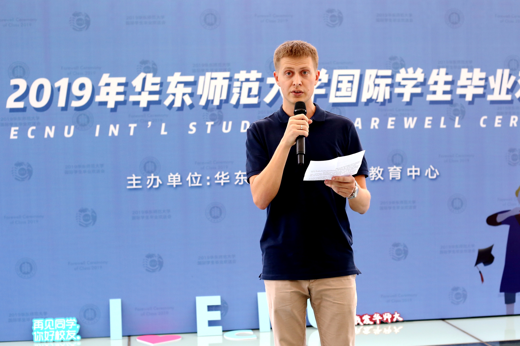 活动当天,尤其引人瞩目的是2017-2019三年亮相于华东师大毕业典礼上的留学生发言代表大卫、王小龙和艾墨本惊喜同框,用流利的普通话共同诉说在华的精彩故事,让到场的师生感受到了留学生意气风发、幽默风趣的一面。