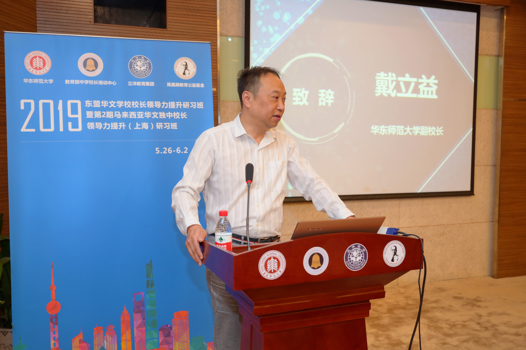 戴立益在致辞中对来自马来西亚、柬埔寨、泰国等东盟国家华文学校校长的到来表示热烈的欢迎。他回顾了华东师大的历史,特别阐述了在双一流大学建设中所取得的成果,以及学校在推进教育国际化中所做出的努力。华东师大尤其重视开展与“一带一路”国家的文化交流合作,他指出,2018年6月与马来西亚合作举办的第1期马来西亚华文独中校长领导力提升研习班,是我校具有开创性的中学校长培养项目之一。东盟国家尤其是马来西亚的华文教育发展成效显著,当地华人百年来对中华文化的坚守、执着传播,令人感佩。2019年首届东盟华文学校校长领导力提升研习班的举办,是华东师大积极落实“一带一路”国家战略,主动对接“一带一路”文化交流合作的重大项目。华东师大愿意继续拓展、加深与东盟国家文化、教育多方面的交流互动,支持华人教育的长远发展。