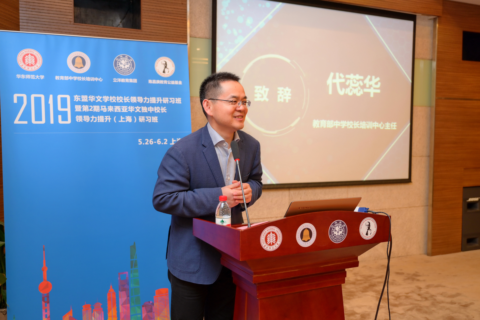代蕊华在致辞中,介绍了30年来中学校长培训中心对海内外校长的培养、跟踪服务、教育交流所做的工作,他期望通过本次研习,来自东盟国家华文学校校长们能够充分了解中国基础教育的最新发展动态,开拓视野,学习经验,并与中国基础教育学校建立相互交流、相互学习的平台,为推动中国与东盟国家的教育事业、文化交流做出更大的贡献。