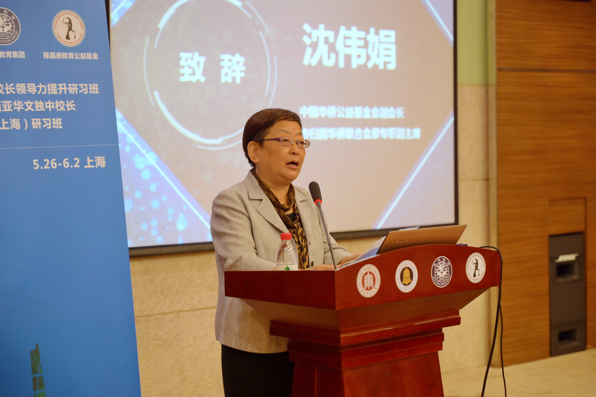 沈伟娟充分肯定华东师大和教育部中学校长培训中心承办这次培训所做的工作,她介绍了中国华侨公益基金会的发展历史与当下使命,特别介绍了中国华侨公益基金会的下属机构陈嘉庚基金会在马来西亚及其他东盟国家开展项目的情况,她鼓励在座华文学校校长发扬陈嘉庚精神,促进教育事业发展。