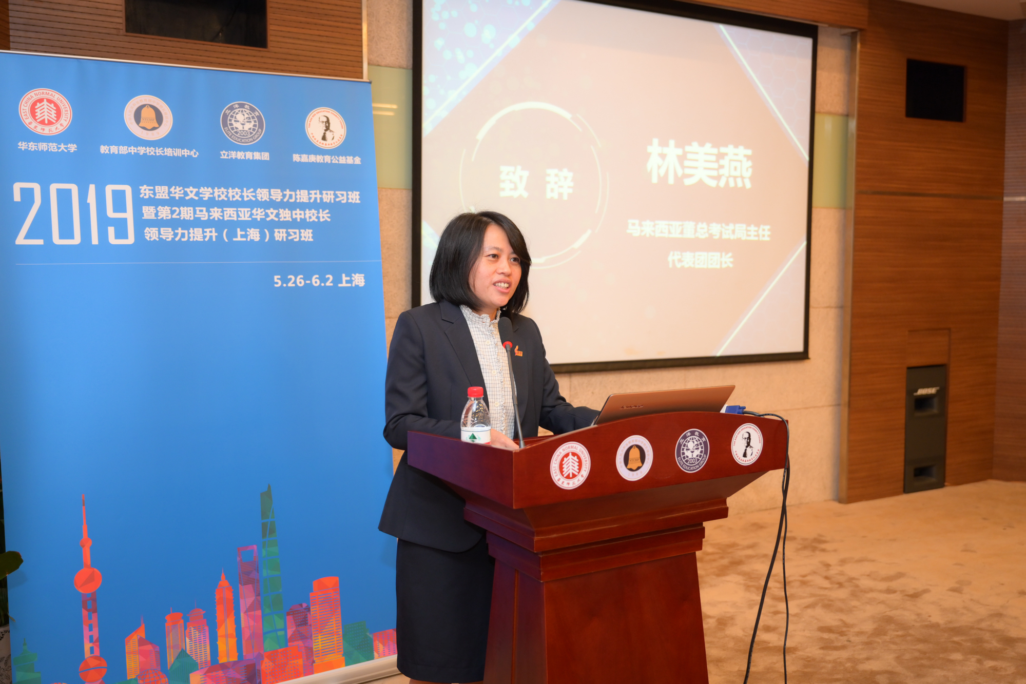 5月27日上午,“首届东盟华文学校校长领导力提升研习班暨第2期马来西亚华文独中校长领导力提升(上海)研习班”开学典礼在校举行。副校长戴立益,校友基金会主任邢和祥,中国华侨公益基金会副会长、上海市归国华侨联合会原专职副主席沈伟娟,马来西亚董总考试局主任林美燕博士,教育部中学校长培训中心主任代蕊华、副主任田爱丽等出席开学典礼。开学典礼由育部中学校长培训中心副主任刘莉莉主持。