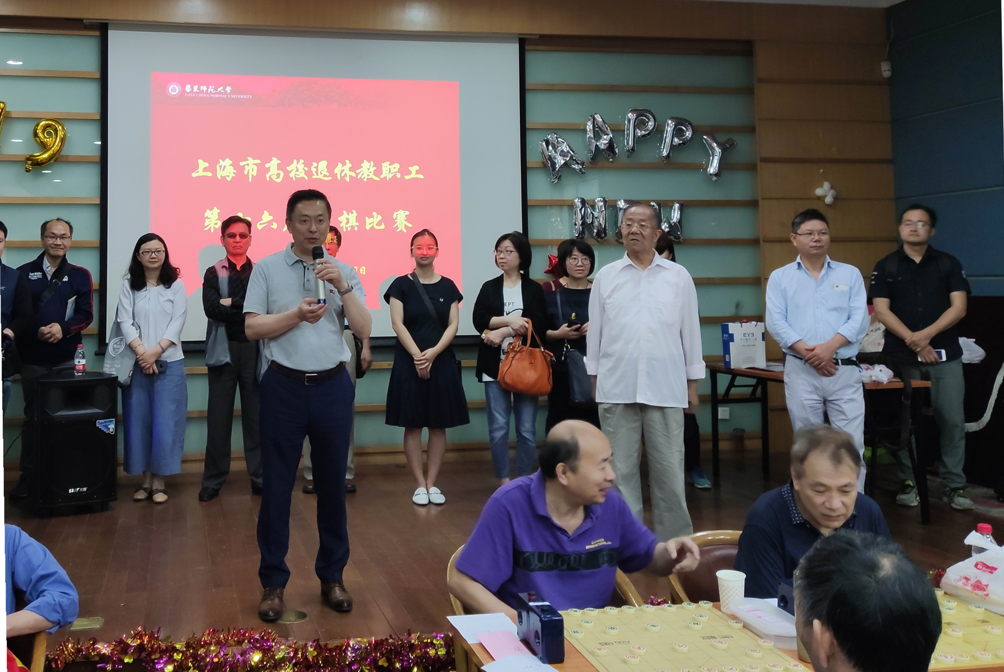 5月29-30日,由上海市高校退管会主办、华东师大老龄办承办的第十六届上海市高校退休教职工象棋比赛在中山北路校区工会活动室举行。来自上海交通大学、复旦大学、同济大学、3245澳门新莆京、上海大学等本市16所高校的84名退休象棋爱好者参赛。上海市高校退管会顾问沈惠君、上海市高校退管会常务副主任李玉华、上海市高校退管会副秘书长兼办公室主任孙大卫出席开幕式,我校老龄办主任黄平出席开幕式并致辞。