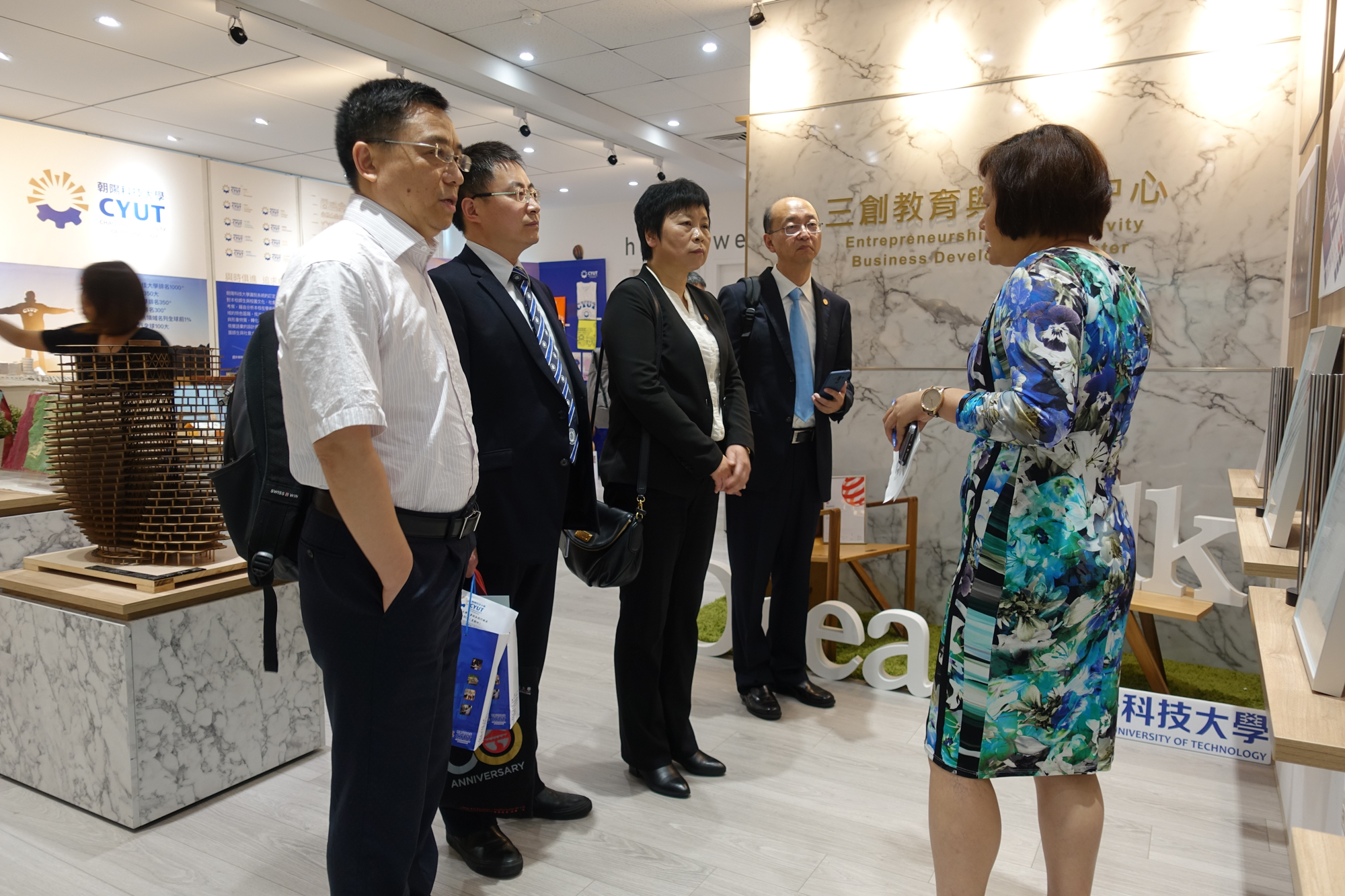当日下午,我校代表团到访朝阳科技大学。该校是台湾地区第一所私立科技大学,该校的创新育成中心是台湾地区唯一获得欧洲育成联盟认证的单位,在“三创”教育(创意、创新、创业)方面具有显著特色。该校校长郑道明、副校长赖奎魁分别接待了我校代表团。该校校长助理宋宏薰和张有恒、副学务长汤显贺、产学合作处副产合长刘素娟、大陆事务组主任谢宗桦、两岸事务中心主任杨逸成等与我校代表团开展交流。我校代表团重点参观了该校三创教育与发展中心和光复新村创业园区改造项目。朝阳科大在学生创意培养、创新指导、创业服务、创赛获奖等方面颇具经验,并在海内外享有声誉。另外,该校在学校、政府、企业、社区、校友间互相合作、活用资源等领域也颇有建树,值得借鉴。