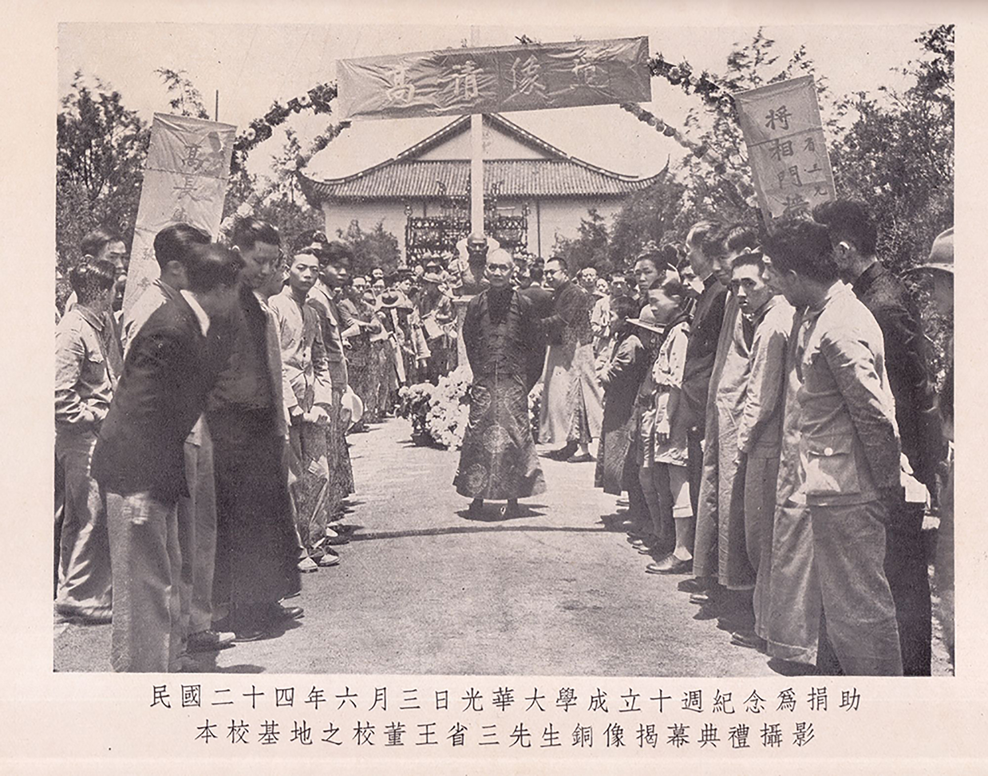 1935年,光华大学成立十周年时为王省三先生纪念铜像揭幕典礼