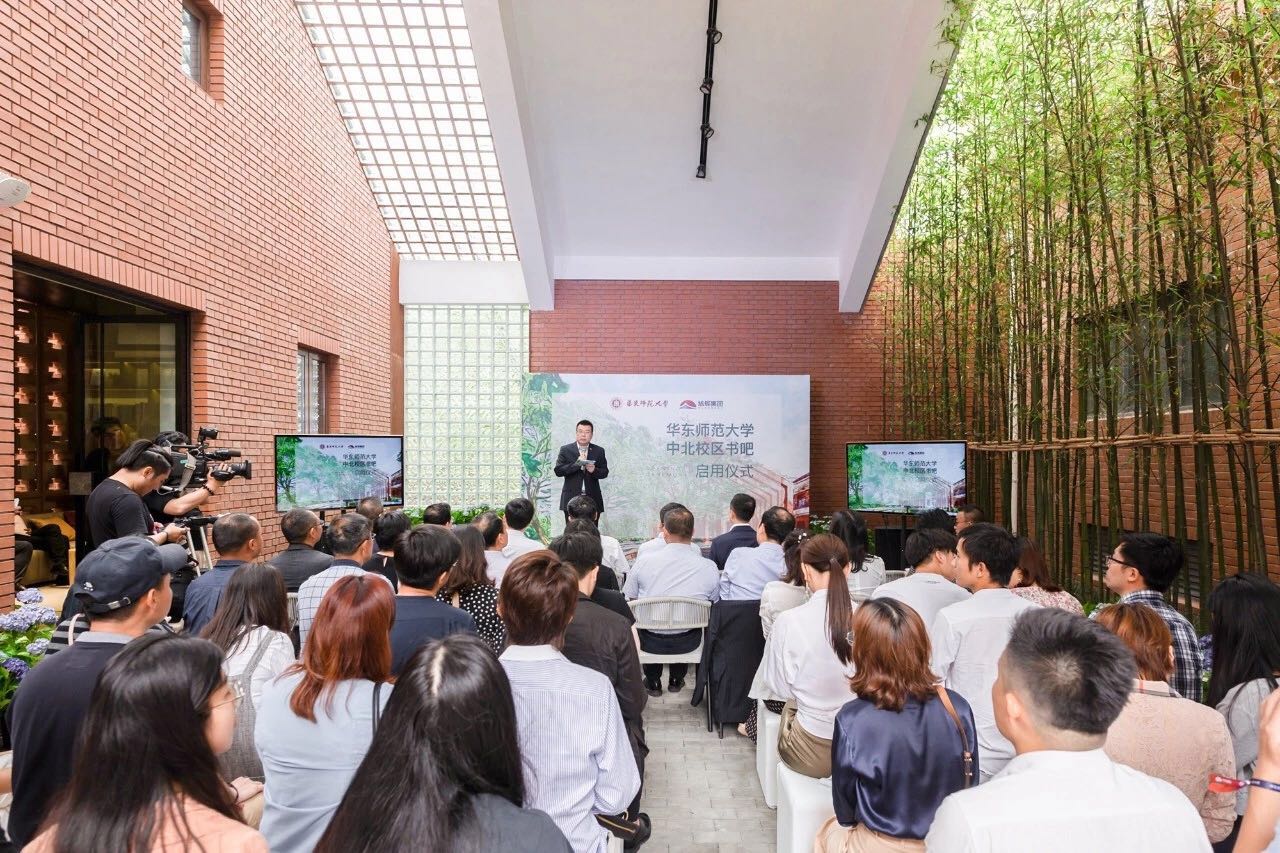 旭辉集团总裁林峰表示:“感谢华东师大提供了这样的一个机会和平台,感谢所有伙伴的付出。两年时间,我们把一个美好的设计变成了现实,让这个书吧有了今天精彩的亮相。”他说,“丽娃河边的这个书吧,融入了很多我们对于环境的思考,比如如何让老建筑焕发新的生命,如何让新与旧在冲突中实现美好的融合。我们希望,这个书吧可以成为城市更新的一个小模板,给予建筑与人文更多地启发,也希望这座建筑能在丽娃河边传承下去,实现更多校园与城市的美好设想。”