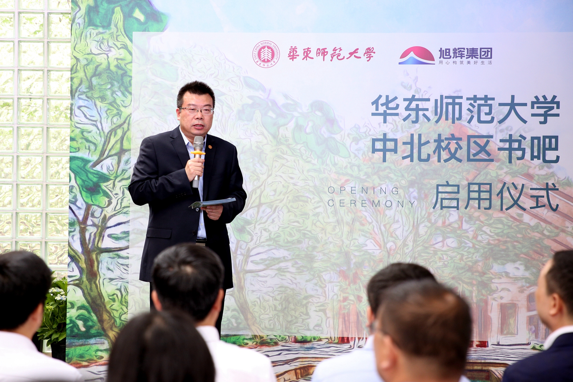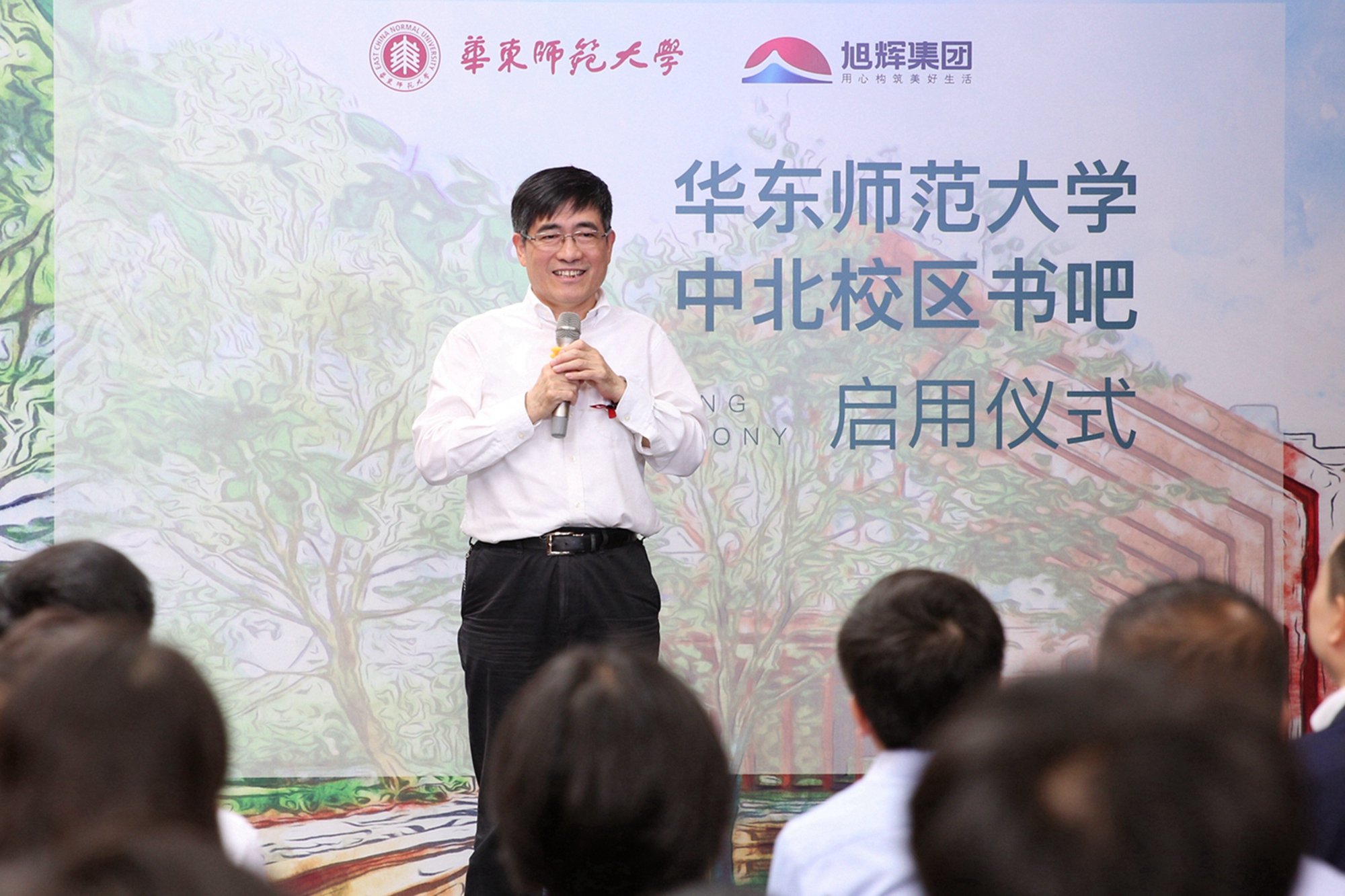 “丽娃河在华东师大师生校友心目中有着无可取代的地位,这样一条充满灵气的、融入了师大文脉与文化的小河边,应该有更多阅读的空间。”华东师大党委书记童世骏在致辞中说道,华东师大是教书、读书、写书的地方,我们有很好的出版社,现在的校园里又有几家很好的书店,所以华东师大又是很好的出书和买书的地方。正如高尔基所说,“书籍是人类进步的阶梯”,是每个人成长的养料供给地。感谢旭辉集团对书的热爱,使得我们能够借助社会各方面的资源,更好地完成人才培养和文化建设的光荣使命,希望书吧能够成为华东师大、成为普陀区,甚至成为上海的文化新地标。