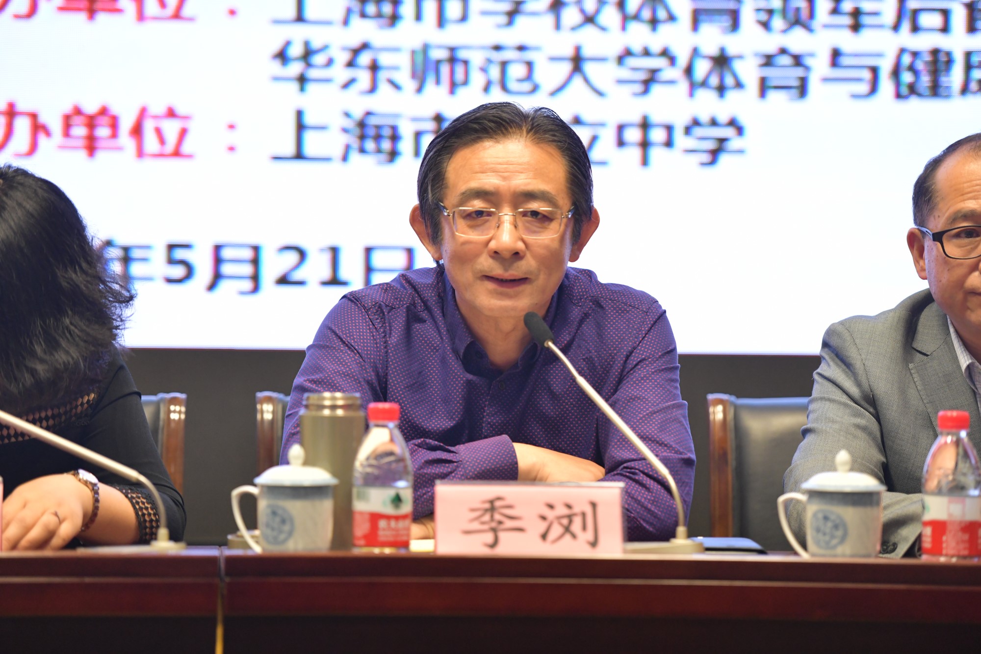 基地主任季浏教授简要介绍了基地的基本情况和特色,并表示基地学员的发展和成长有目共睹,离不开行政部门和基地学员所在学校的大力支持。为上海市培养学校体育领军人才,是一份光荣的事业,是自己作为学校体育工作者应尽的责任与义务。