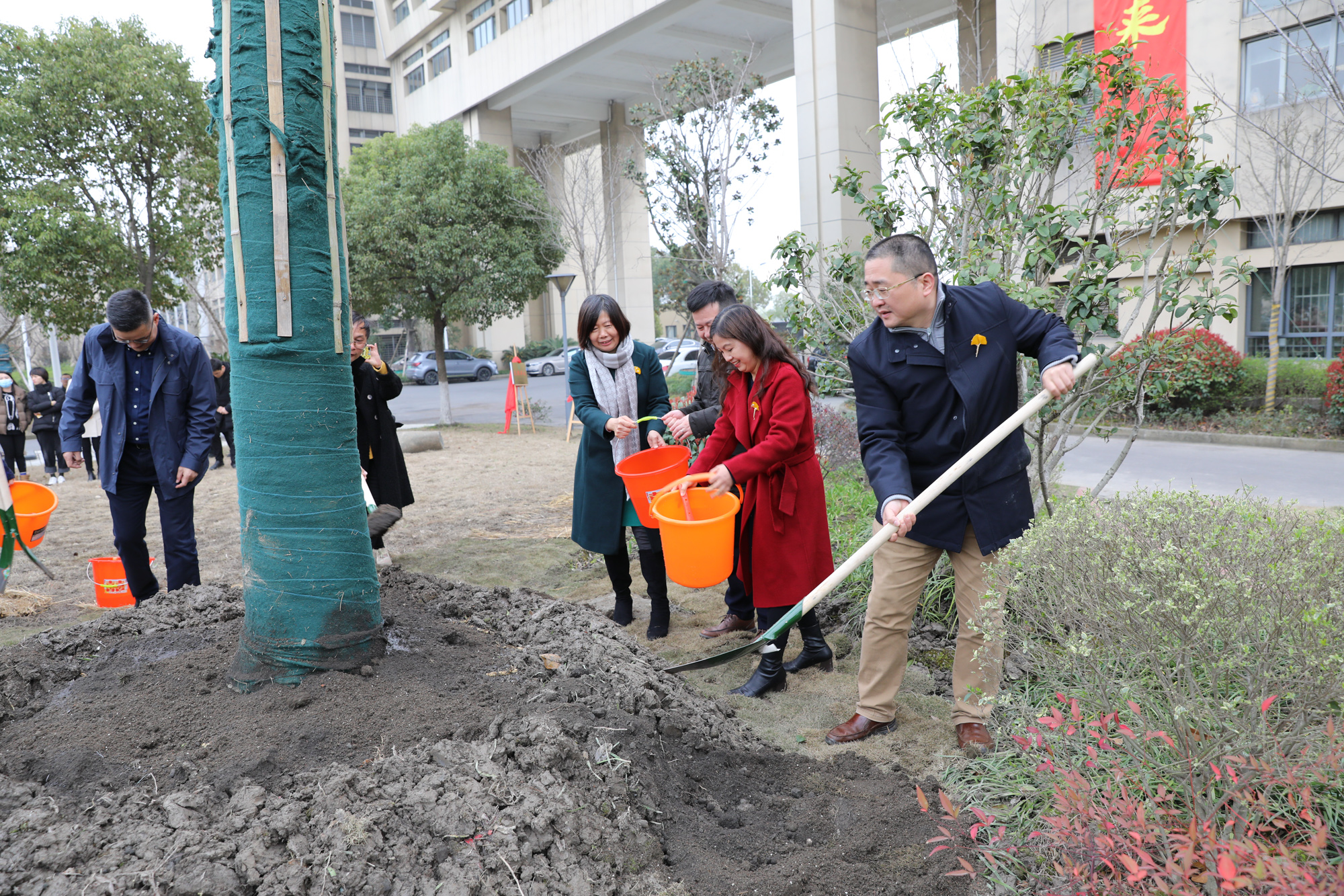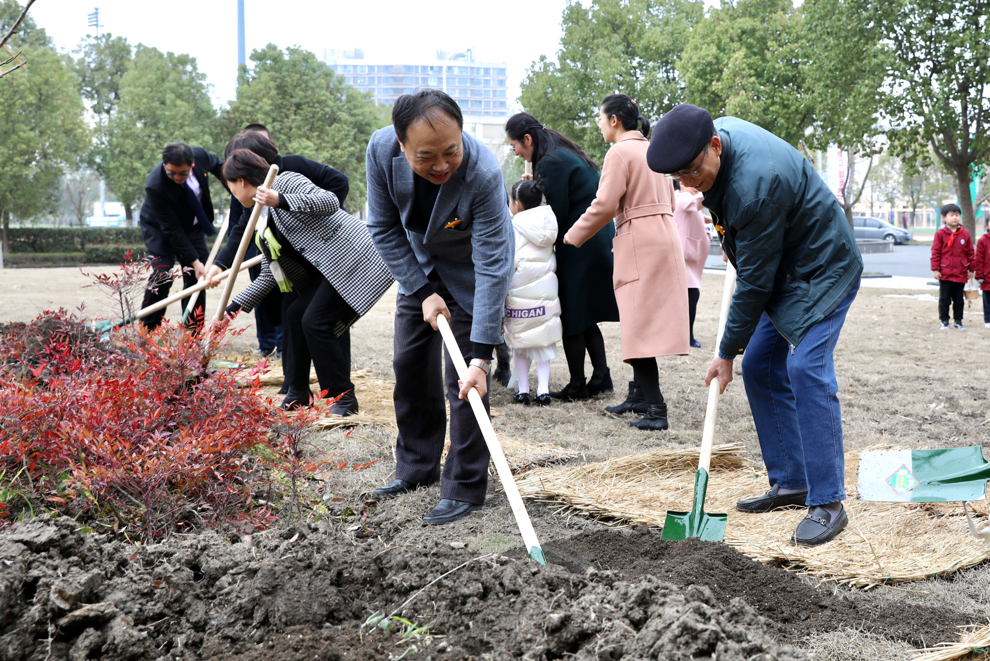 全体嘉宾和校园长、师生代表一起为园区新添两棵“榉树”