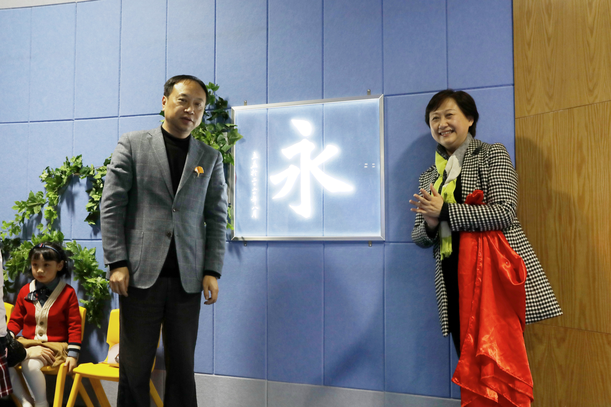 华东师大副校长戴立益、华师紫小兼华师永德实小校长张计蕾为“永”字揭牌