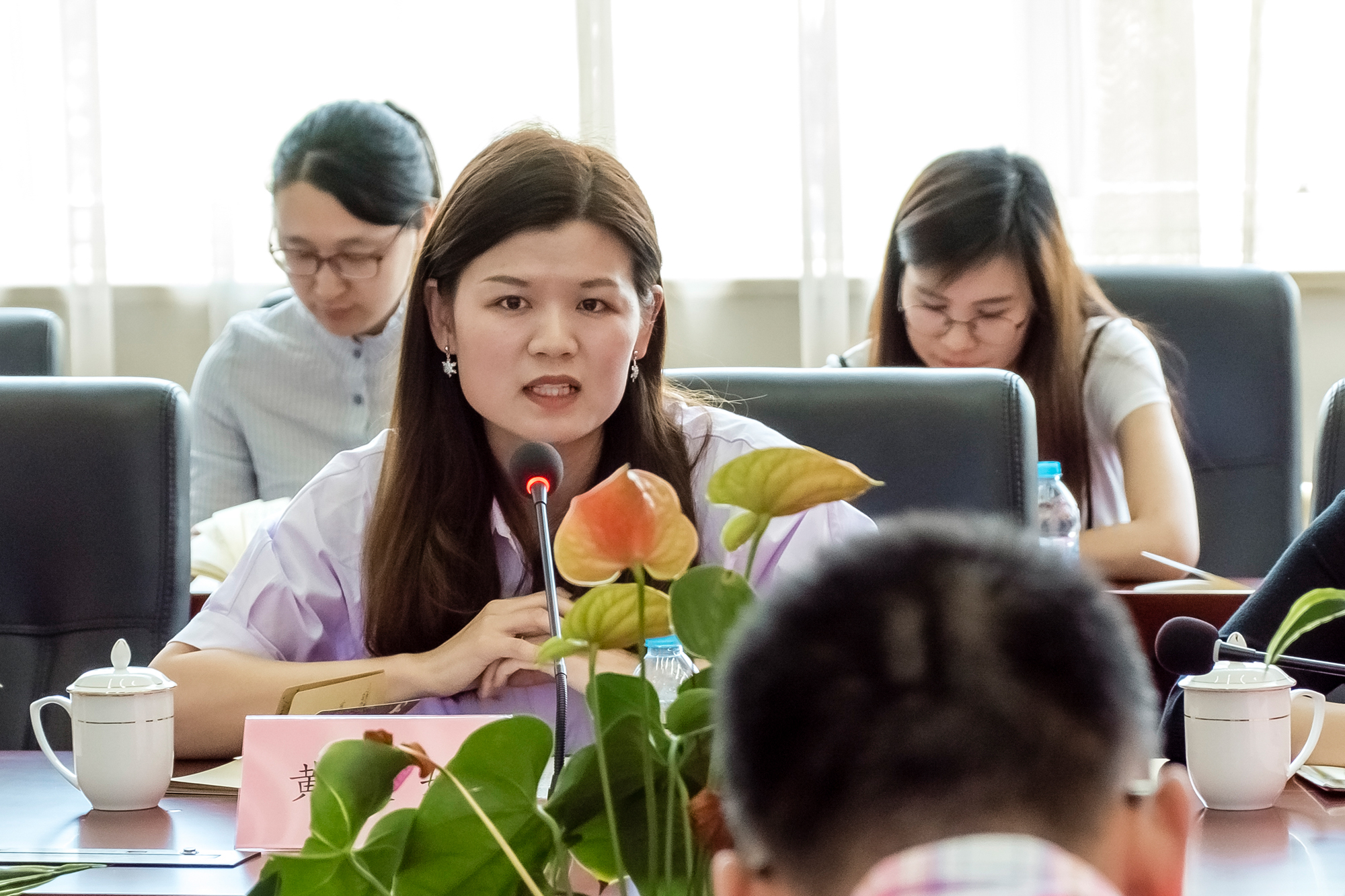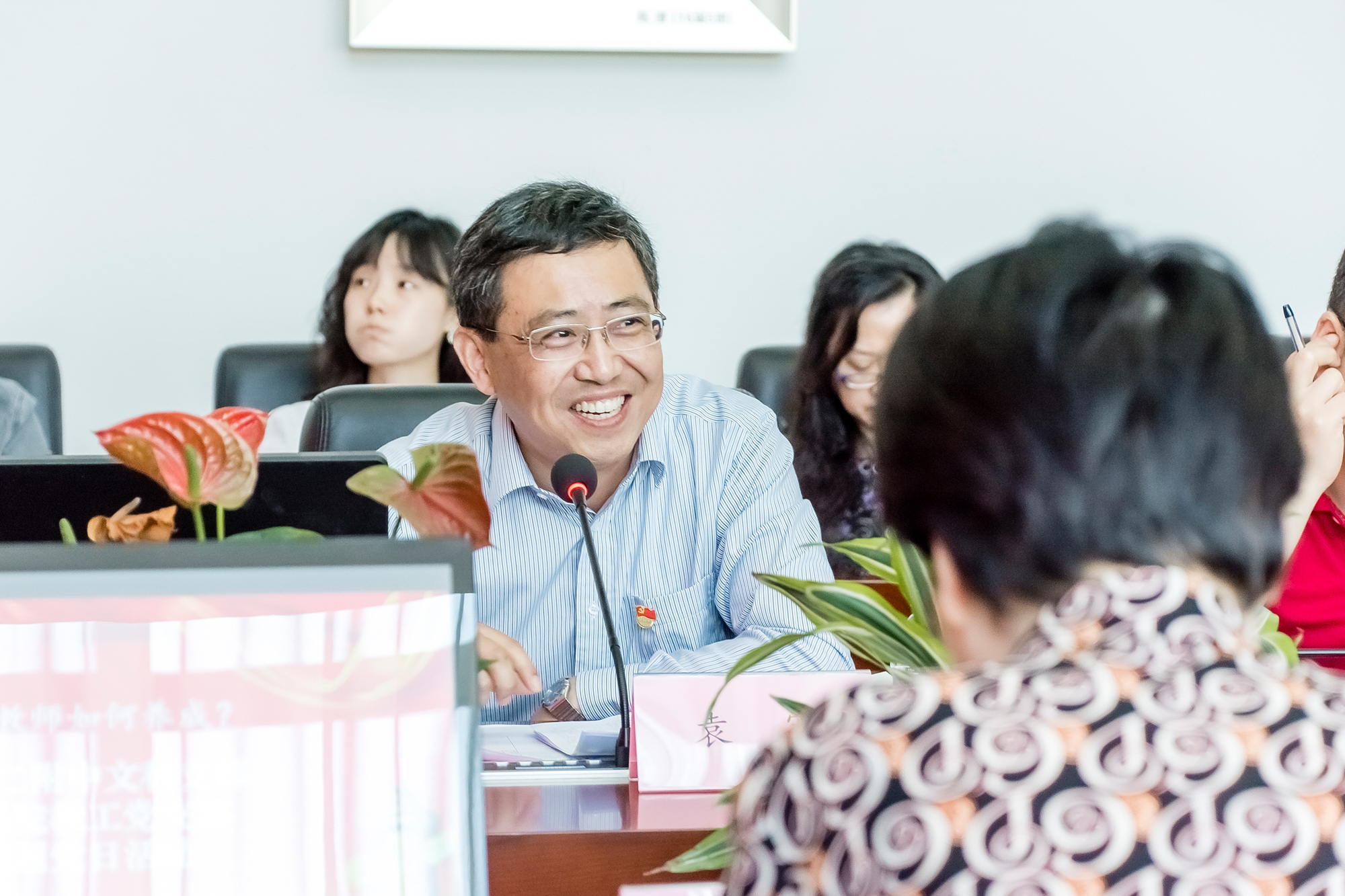 参观之后,两个支部的党员教师围绕“未来优秀教师如何养成”开展交流研讨,活动由二附中文科支部书记唐功亚主持。