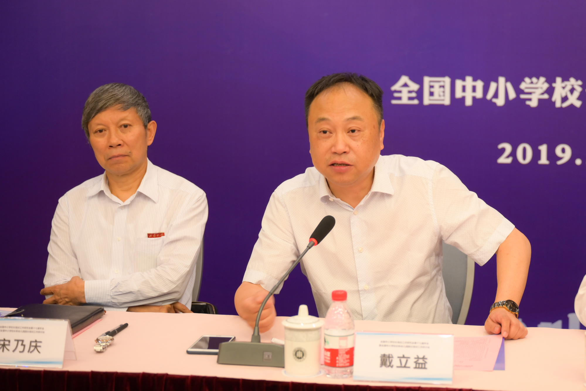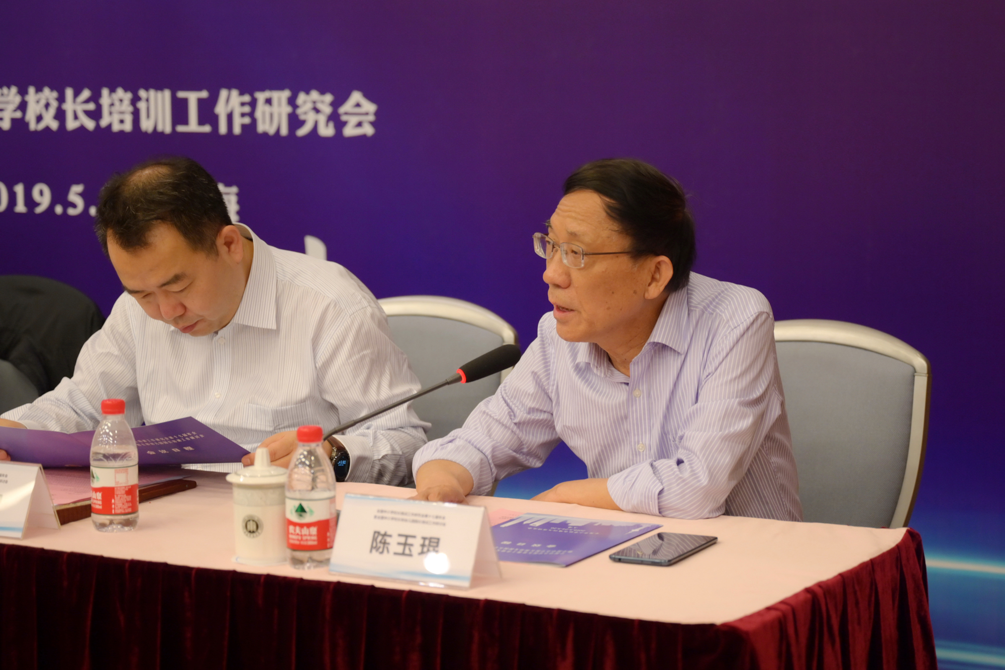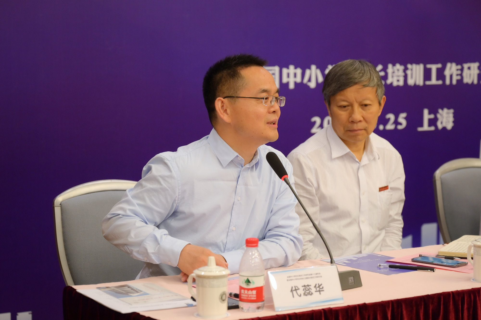 山东省教育厅干训处主任毕诗文、宁波教育学院教育行政学员院长袁玲俊进行了大会交流发言。教育部中学校长培训中心主任代蕊华作了《中小学校长、幼儿园园长培训课程标准(征求意见稿)》的修改说明,全国中小学校长和幼儿园园长培训专家工作组组长宋乃庆介绍了《新时代中小学校长培训质量评价标准》的研制情况。