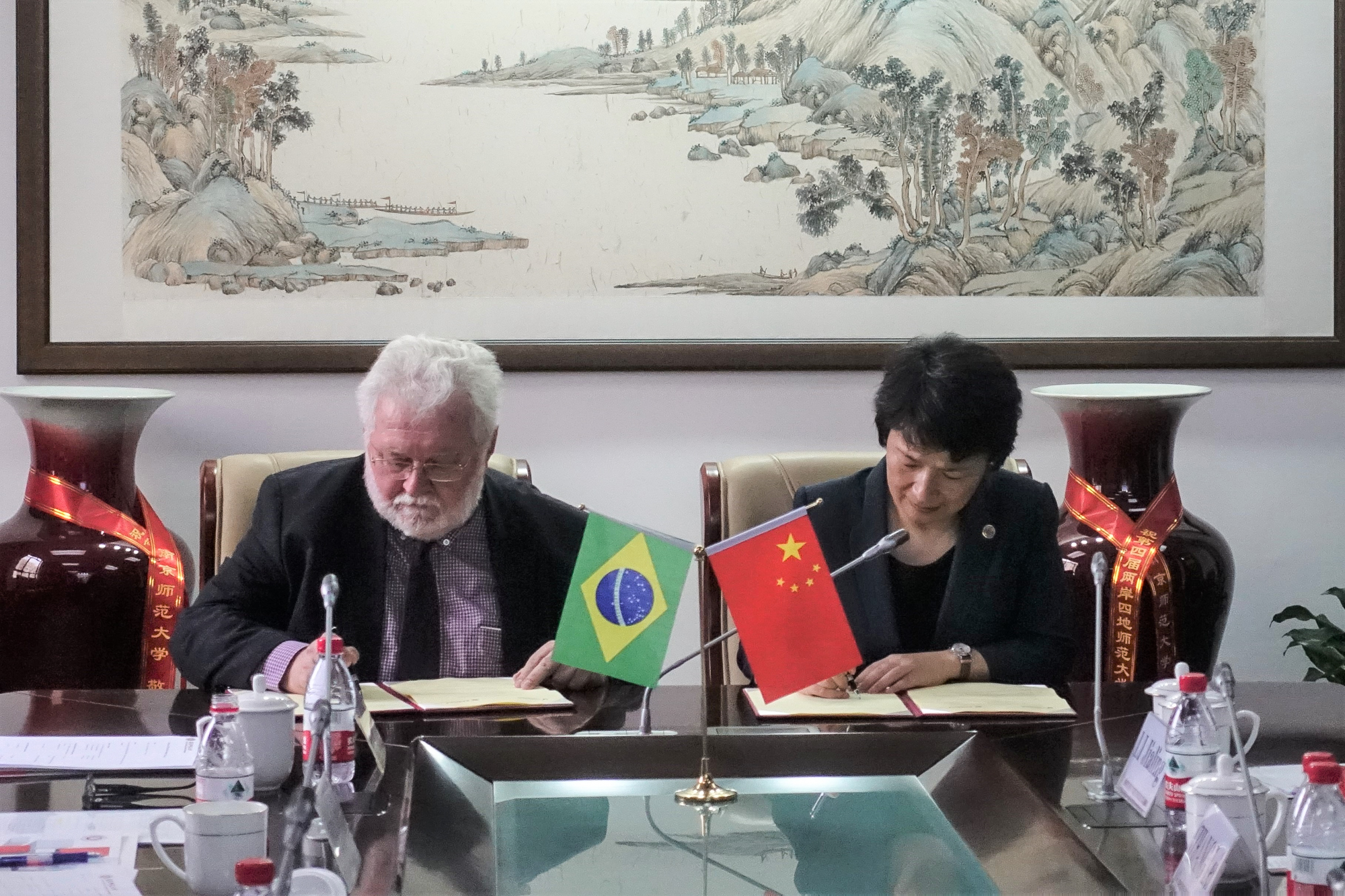 双方随后就国际关系、物理与计算机科学、汉语国际教育等学科合作,短期学生交流交换项目等合作机会进行探讨。会谈期间,梅兵与Marcelo de Aquino签署了两校合作备忘录。