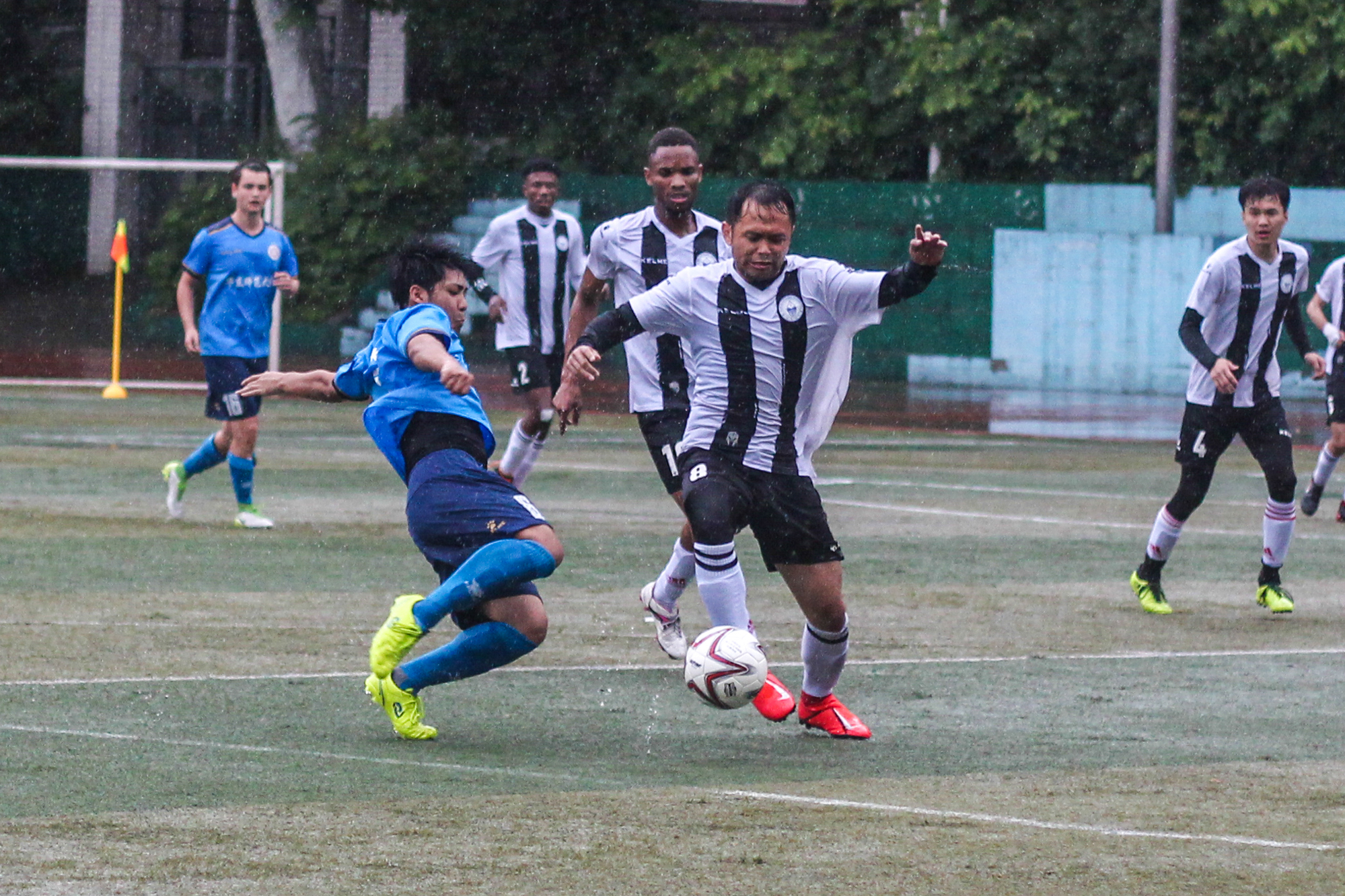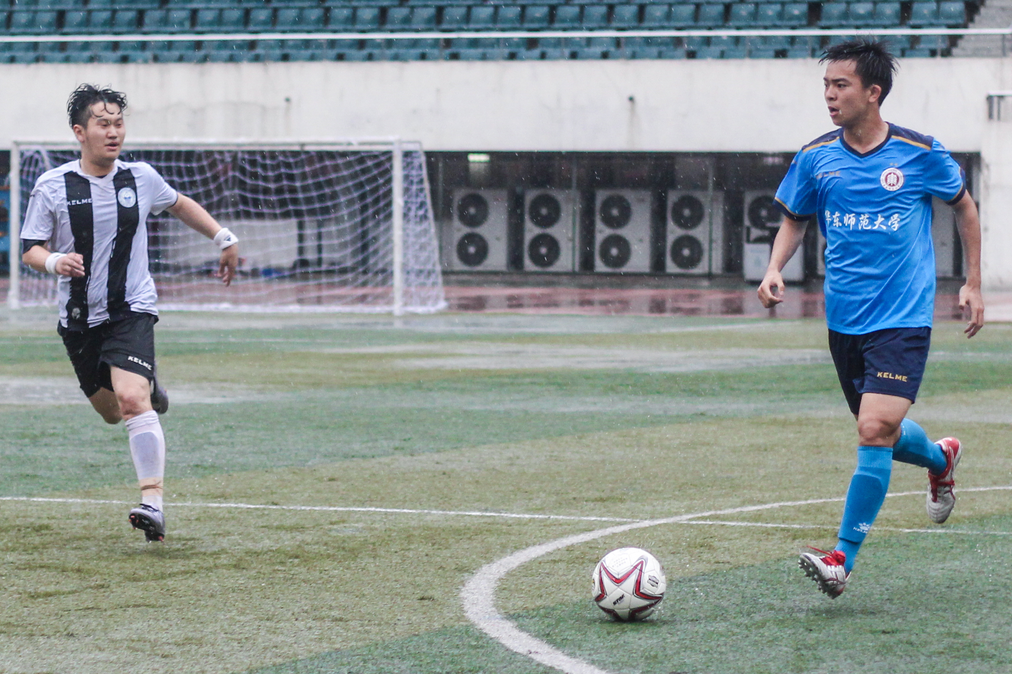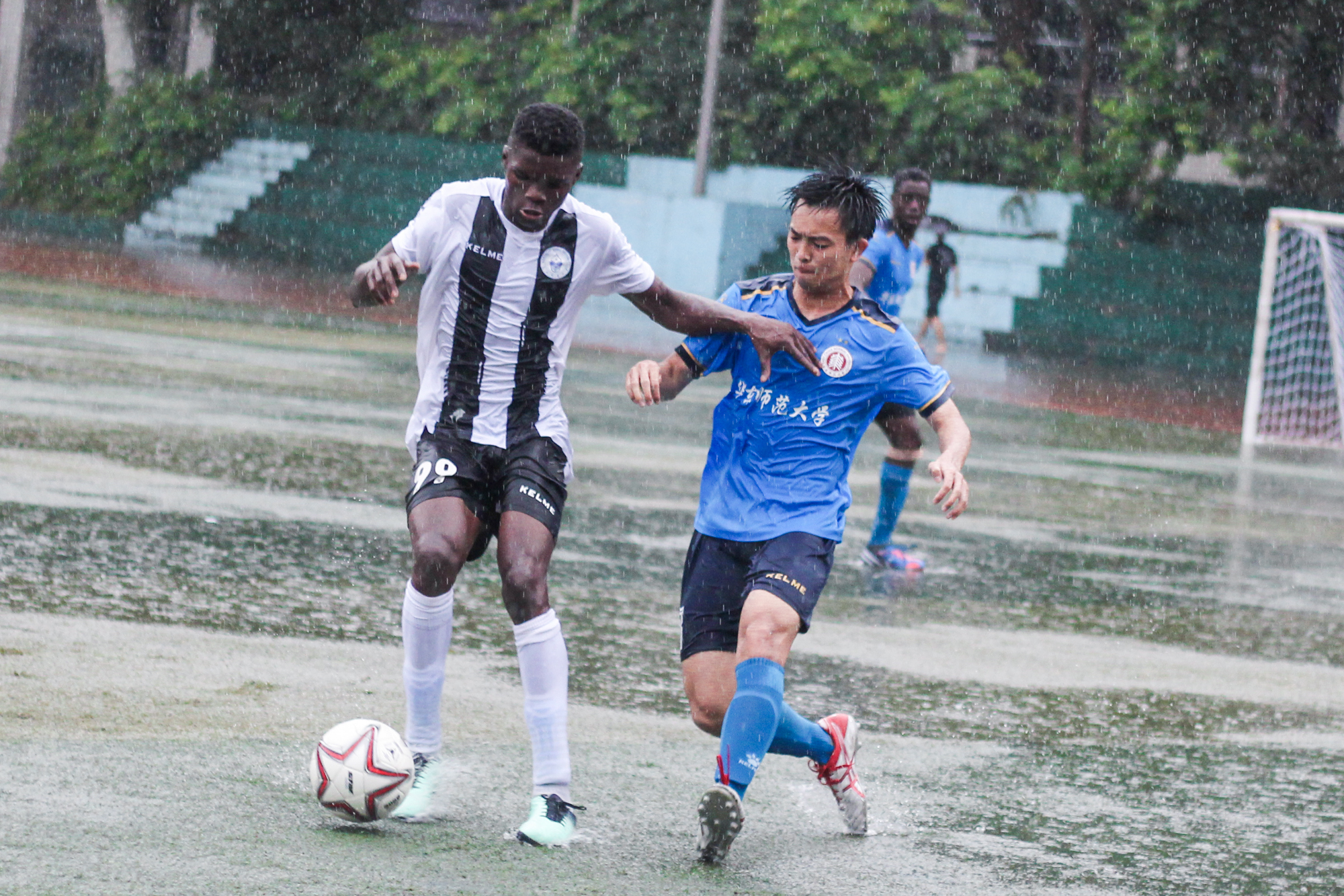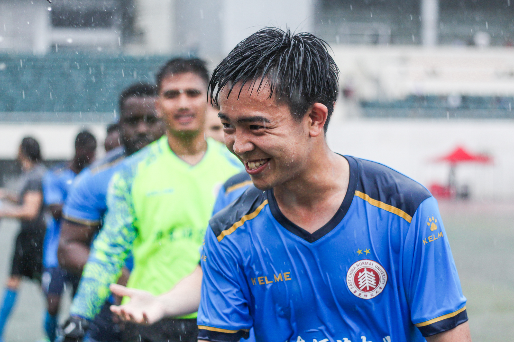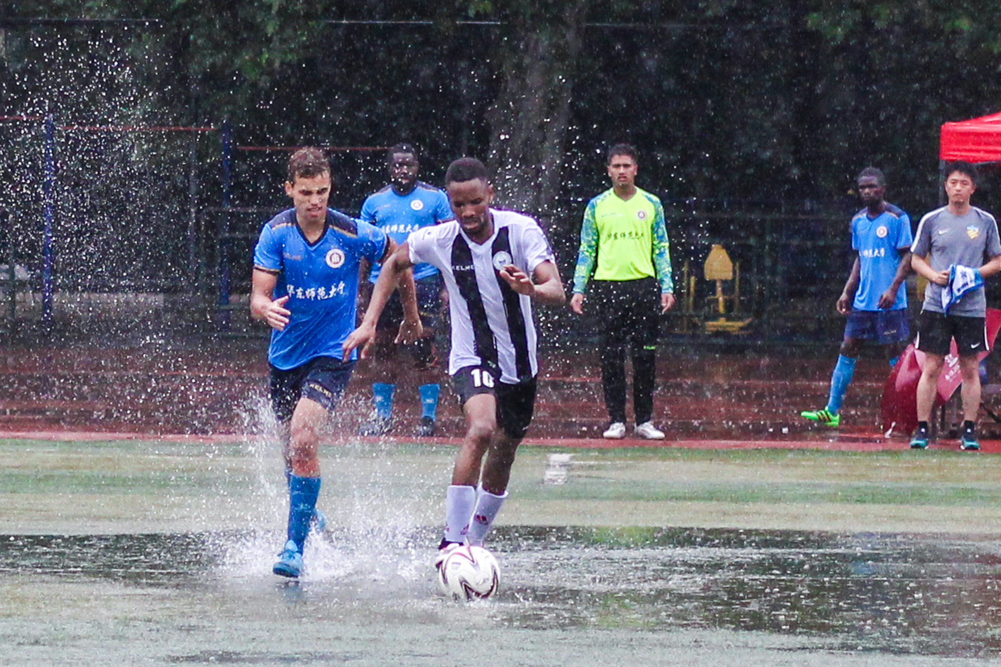 第一场比赛在武汉35度高温中拉开帷幕。在对阵西南大学的第1分钟内,我校代表队迅速取得第一粒进球,最终与实力同样强劲的西南大学代表队打成了1:1平局。第二场比赛对阵陕西师范大学代表队,在下半场20分钟内一路披荆斩棘,连续取得4粒进球,以大比分4:0赢得比赛。但由于比赛规则调整,遗憾止步于冠亚军争夺赛。最后一场比赛中,队员们依然发扬了永不放弃、自强不息的精神,在武汉特大暴雨当中,进行了一场精彩的“水球大战”,最终以3:0获得胜利。