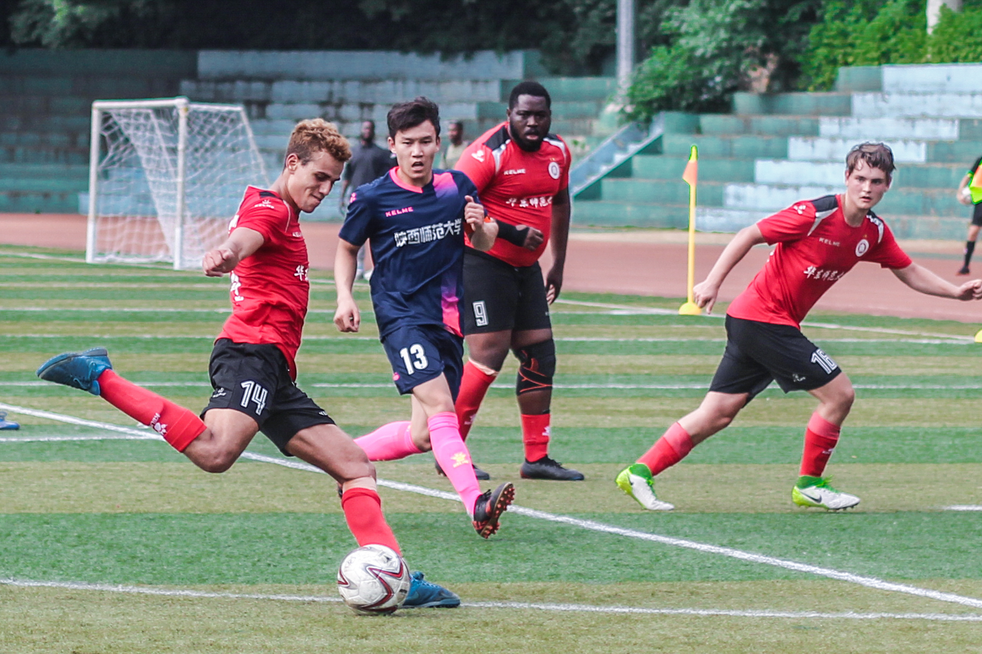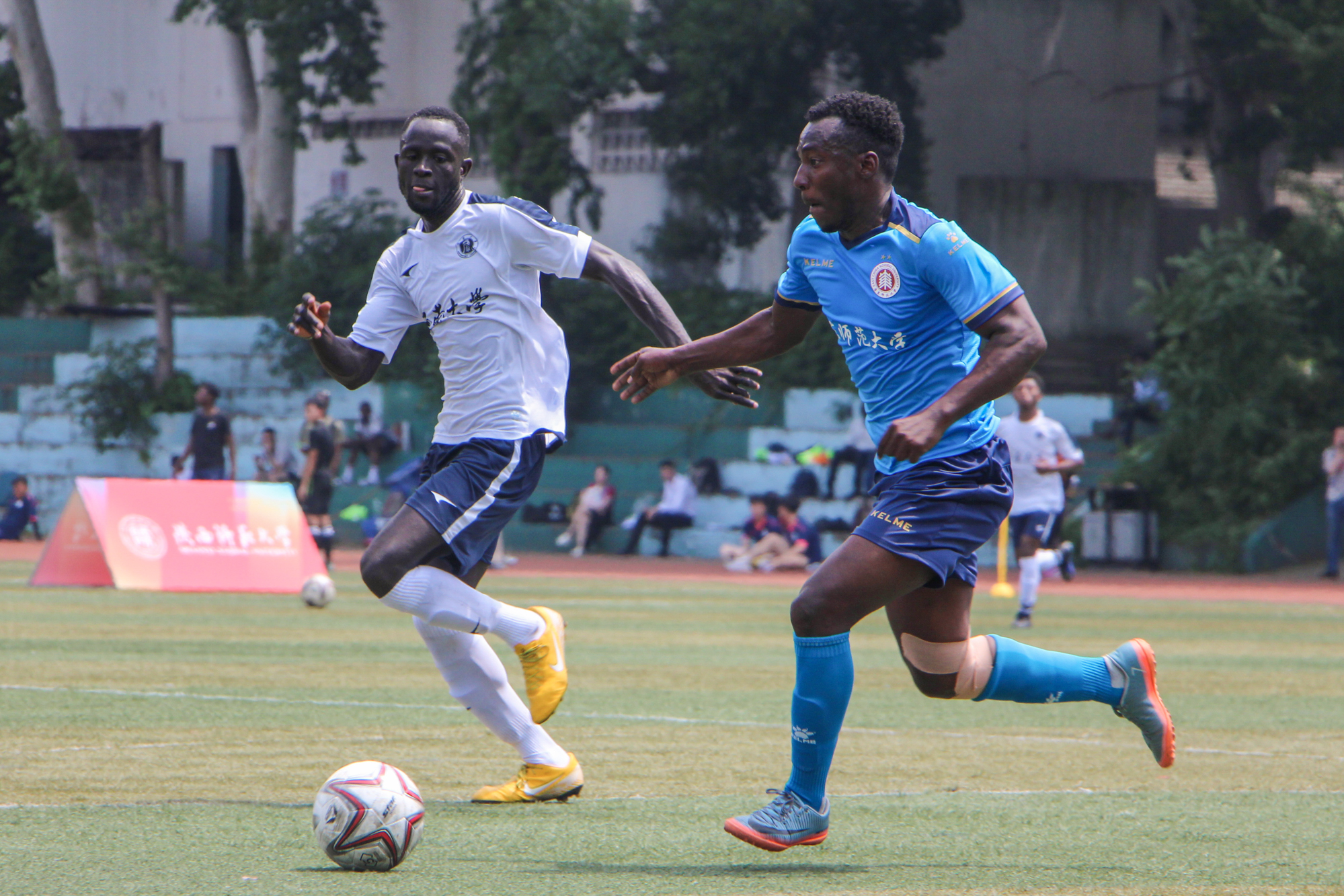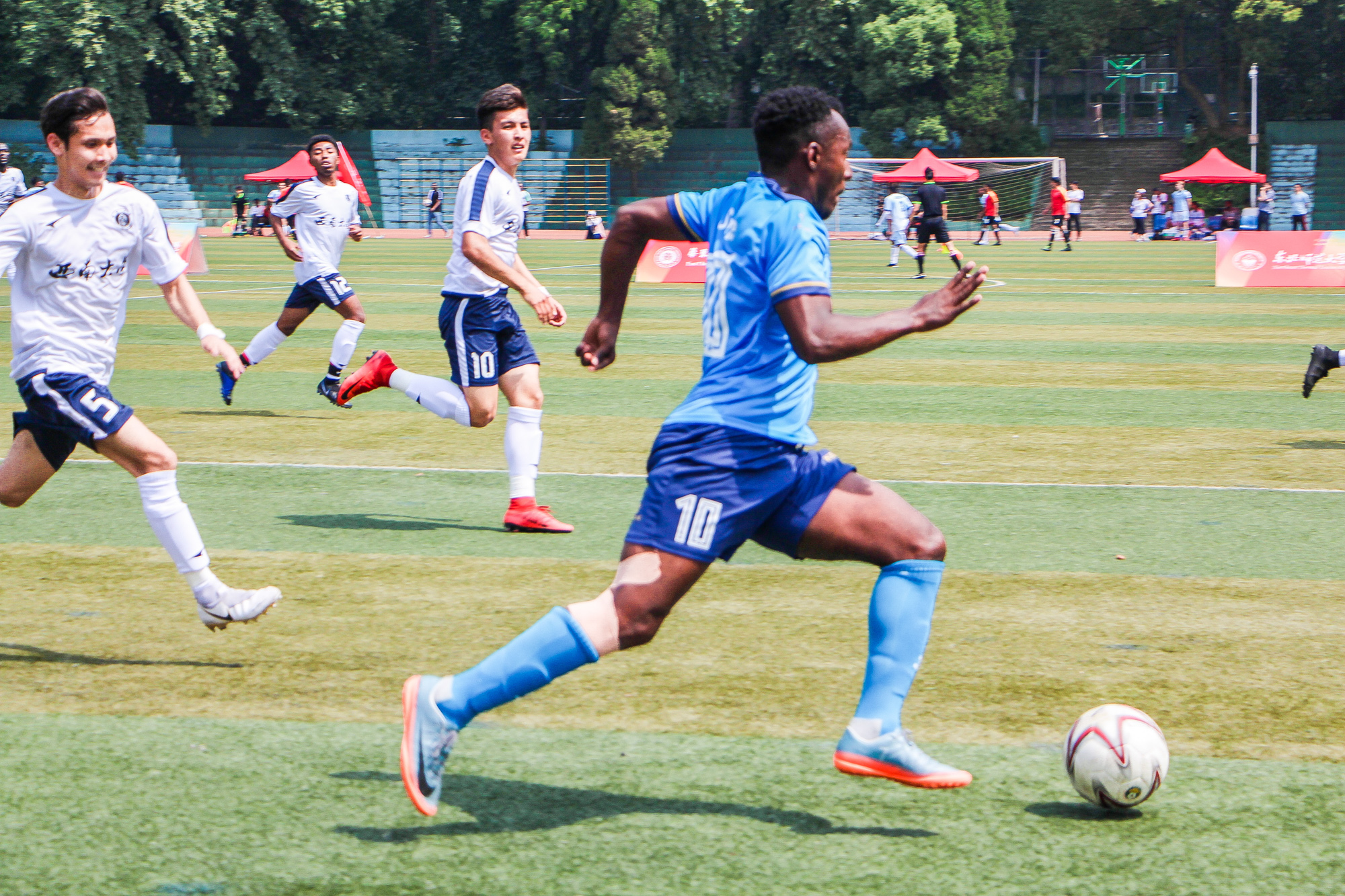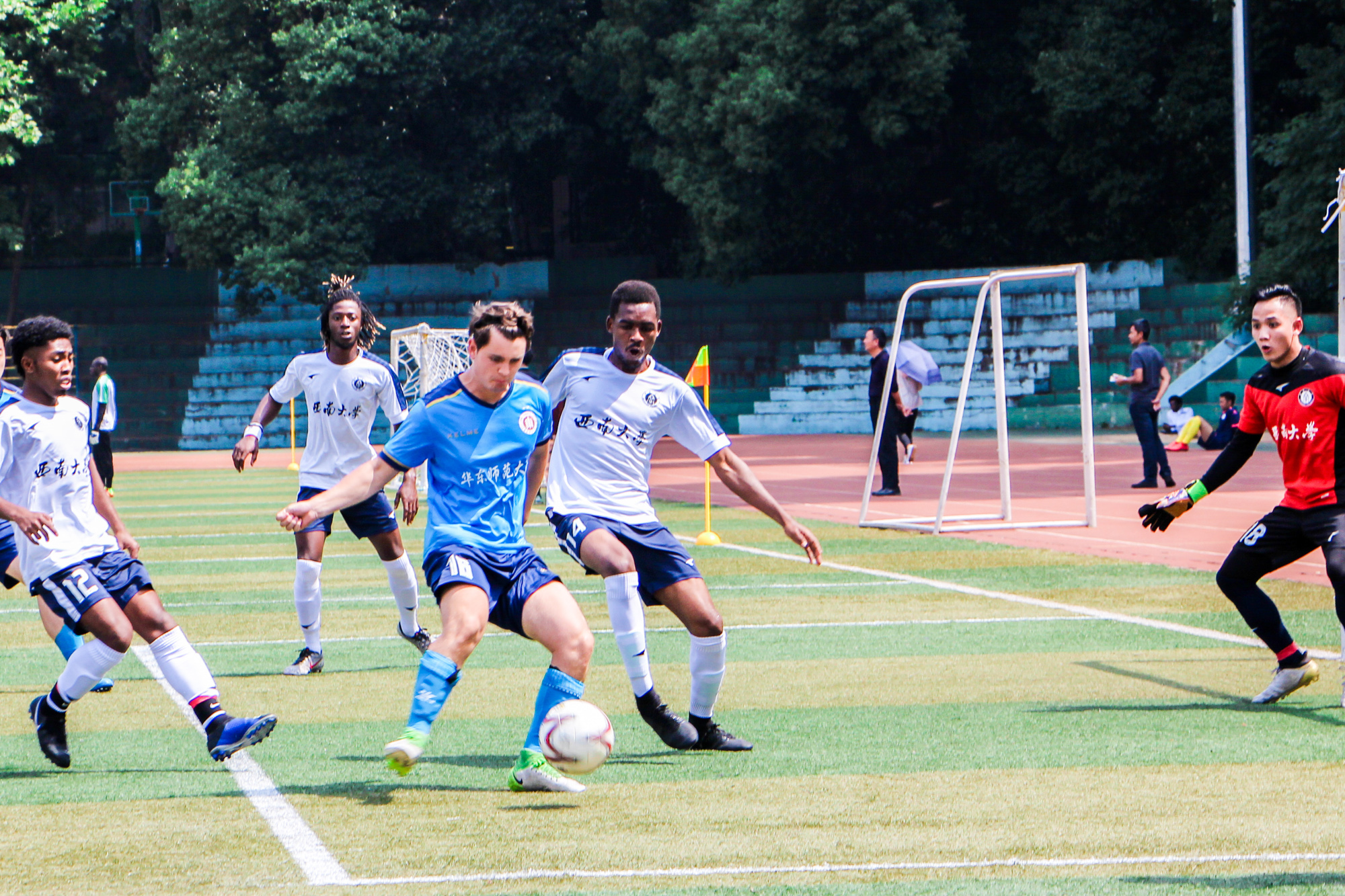 在两天的激烈比赛中,我校留学生足球代表队团结一致、众志成城,以出色的配合分别以1:1战平西南大学、4:0战胜陕西师范大学、3:0力克东北师范大学,成为参赛校中净胜球数最多的队伍。