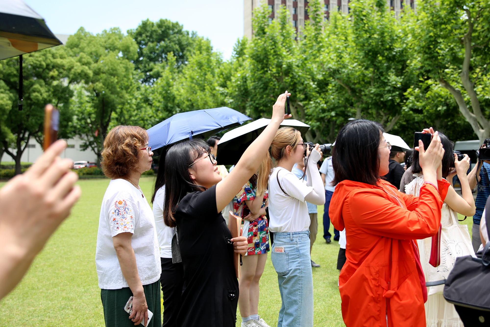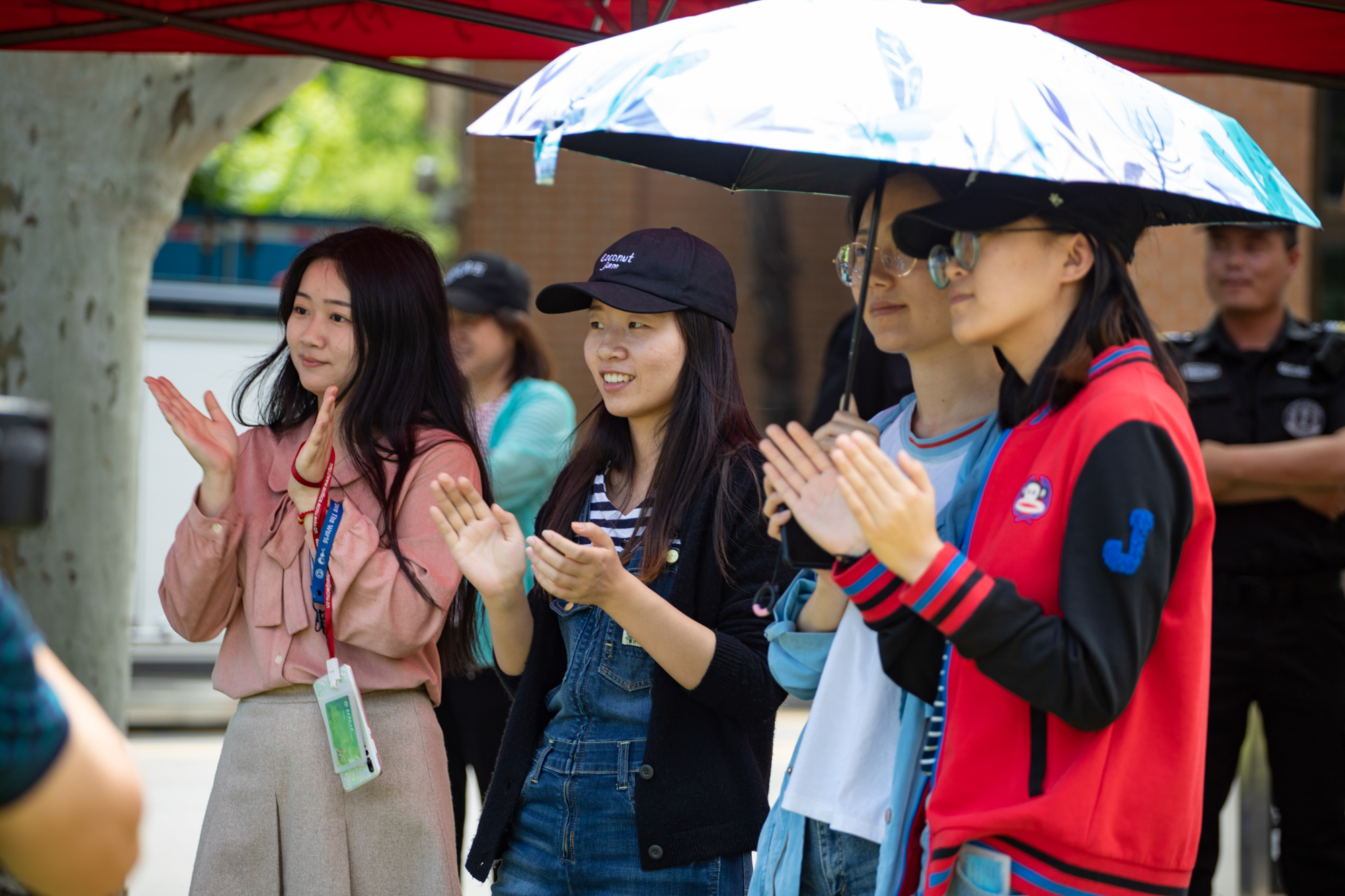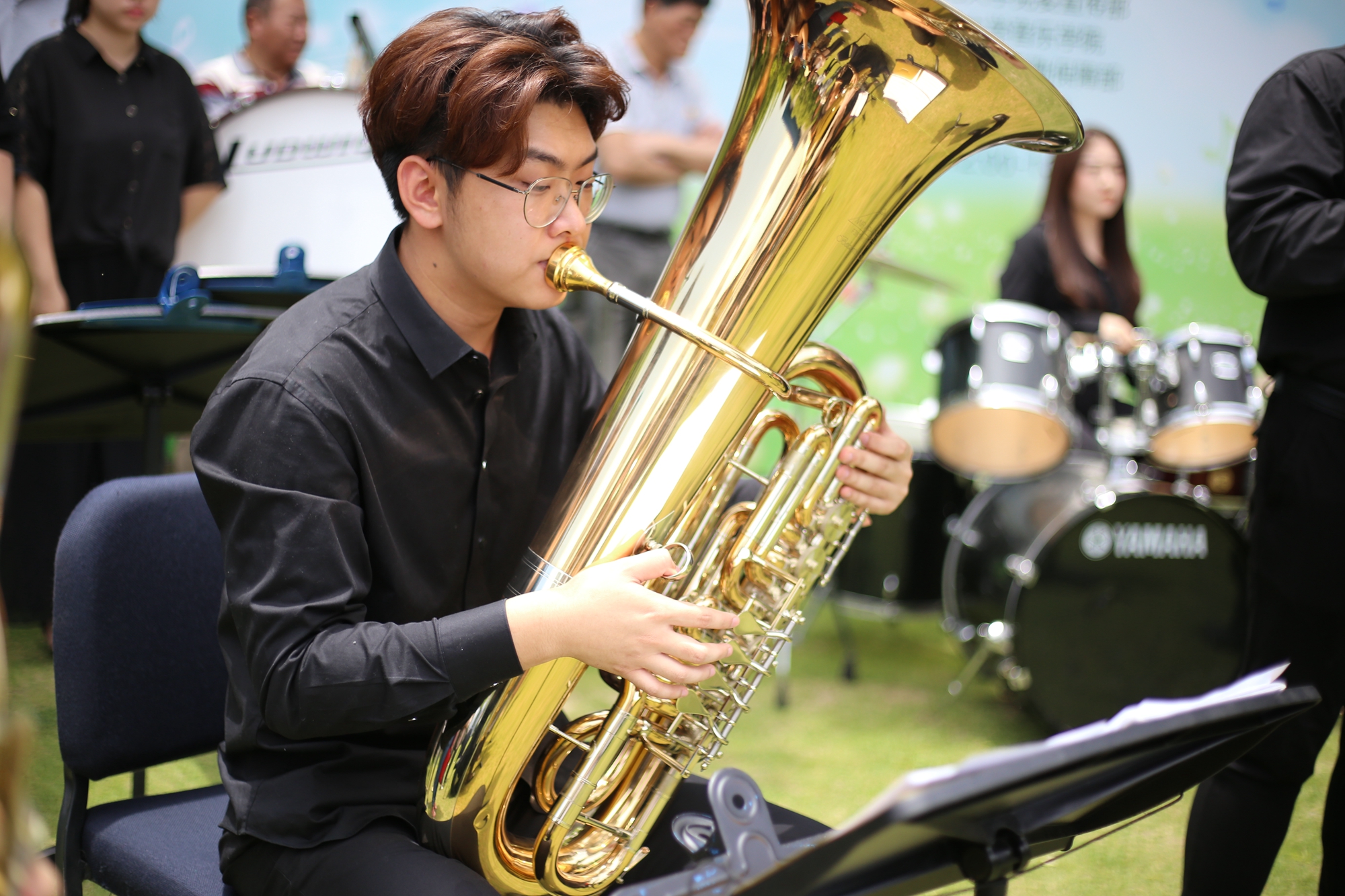 正午的阳光虽热,现场师生们的热情更高。他们纷纷拿起相机、手机拍照、录视频,当一首《我的祖国》响起时,不由得轻声跟唱起来。乐队陆续演奏了根据中国民乐凤阳花鼓改编的《序奏曲》,还有西方古典音乐经典曲目,如《波基少校进行曲》《老人进行曲》《闲聊波尔卡》《雷电波尔卡》《佳节号角》等,这些音乐作品或欢快活泼、幽默诙谐,或激昂悠扬,让现场师生们近距离地感受到铜管乐的魅力。演出在一首轻松欢乐的《拉德斯基进行曲》中结束。