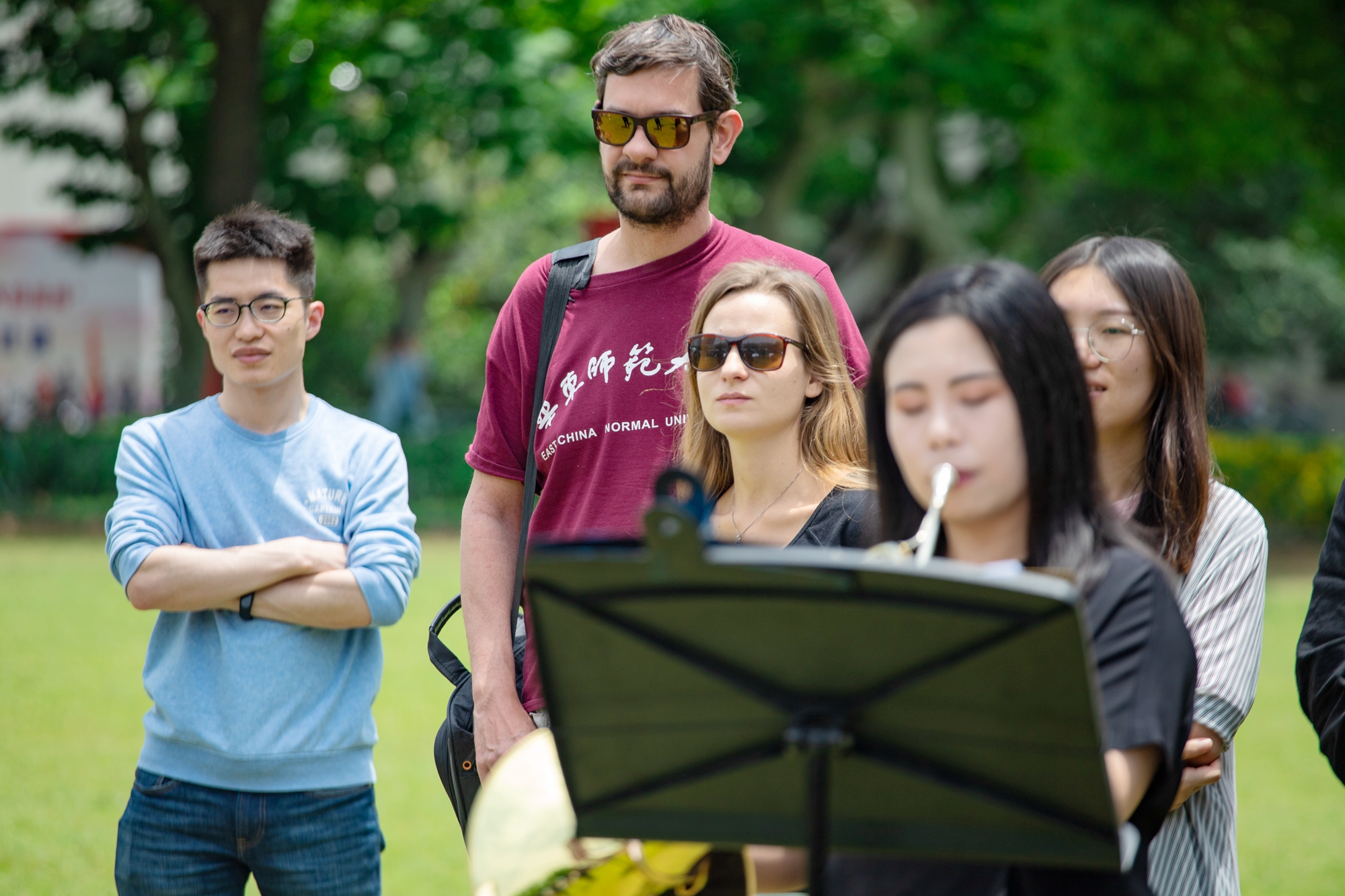 初夏,鲜花怒放,绿草如茵。5月29日中午,在风景怡人的中山北路校区文史楼前大草坪上,师生们与一场户外音乐盛宴——草坪音乐会相遇。