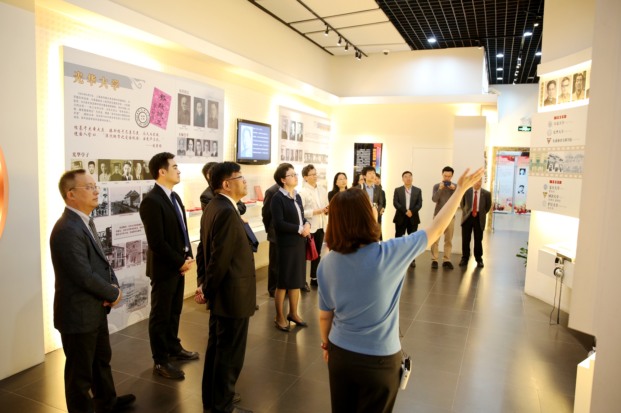 签约前上海中医药大学领导一行参观华东师大校史馆