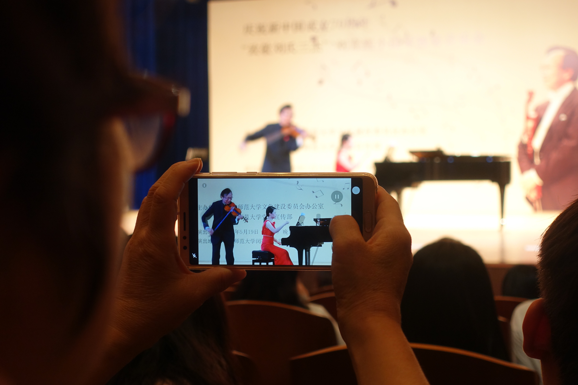 此次音乐会,刘育熙教授联袂青年钢琴家王墨卿为观众演奏了许多动人心扉的曲目。“良宵”明快,“悲歌”戚戚,“汉江”涌动,“花鼓”紧凑,刘育熙教授将二伯刘天华和父亲刘北茂的名曲用小提琴重新演绎,给它们注入了新的活力。他将大伯刘半农的名作《怀念祖国》(根据歌曲《教我如何不想她》改编)表达得深沉又动容,饱满炽热的情感随着琴弦缓缓流出,让观众也满怀对祖国的敬爱与祝福。