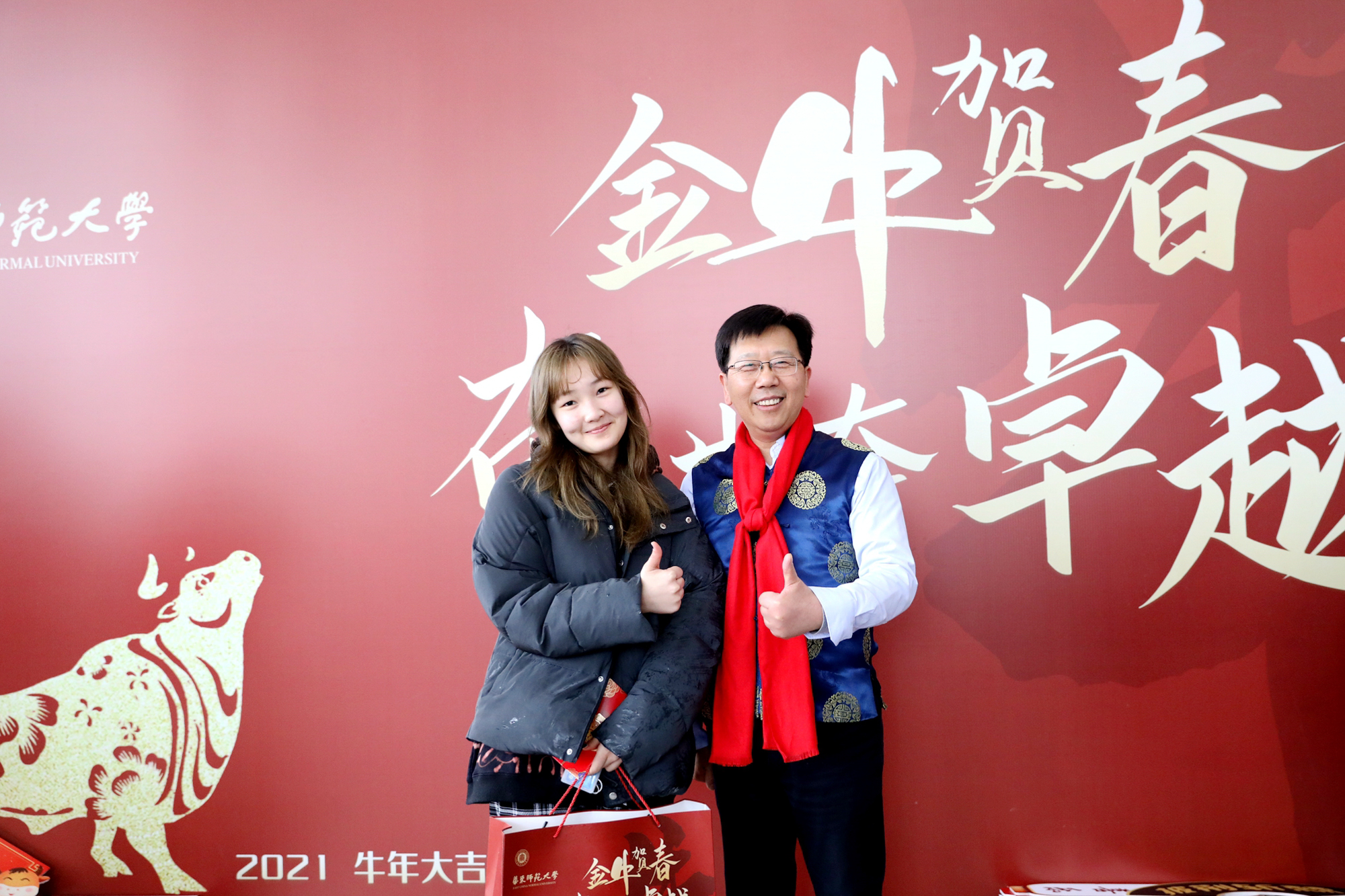 爆竹声中一岁除,春风送暖入屠苏。在闵行校区礼包发放现场,校长钱旭红与同学们碰杯,共饮“生态幸福酒”。这是今年特别设置的师生共饮活动,在除夕当天,取“驱疫贺岁饮屠苏”之意,有兴趣的同学可以现场品尝一杯自制高粱酒。这坛酒来自于华东师大浙江天童森林生态系统国家野外科学观测研究站。天童国家站三代师生扎根野外、艰苦创业,完成我国华东地区、台湾地区以及日本的常绿阔叶林野外调查,编著了我国东部常绿阔叶林调查集,以脚踏实地、奋进向前的精神激励同学们“新年再进百尺竿”。