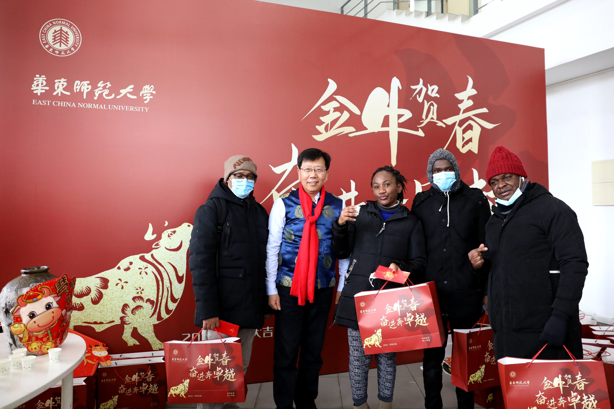 除夕傍晚,华东师大党委书记梅兵、校长钱旭红、党委副书记杨昌利、副校长戴立益分别在两校区为留校学生送上新春祝福。