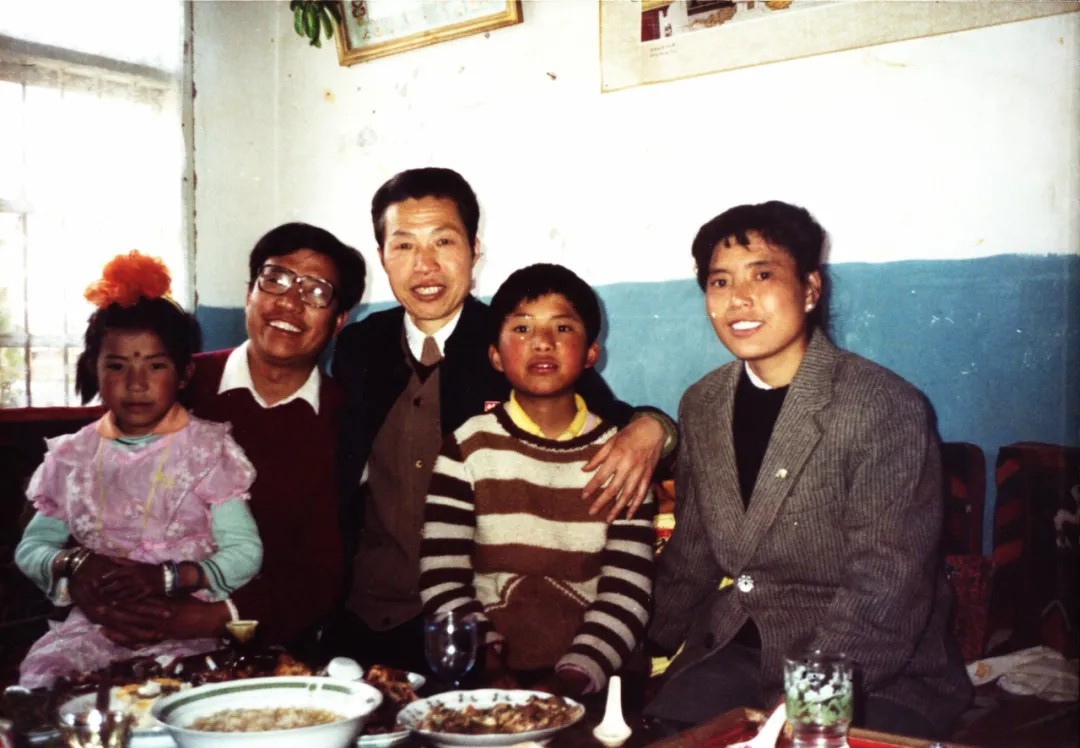 张元坤和藏族学生巴珠一家(中,1999年摄)