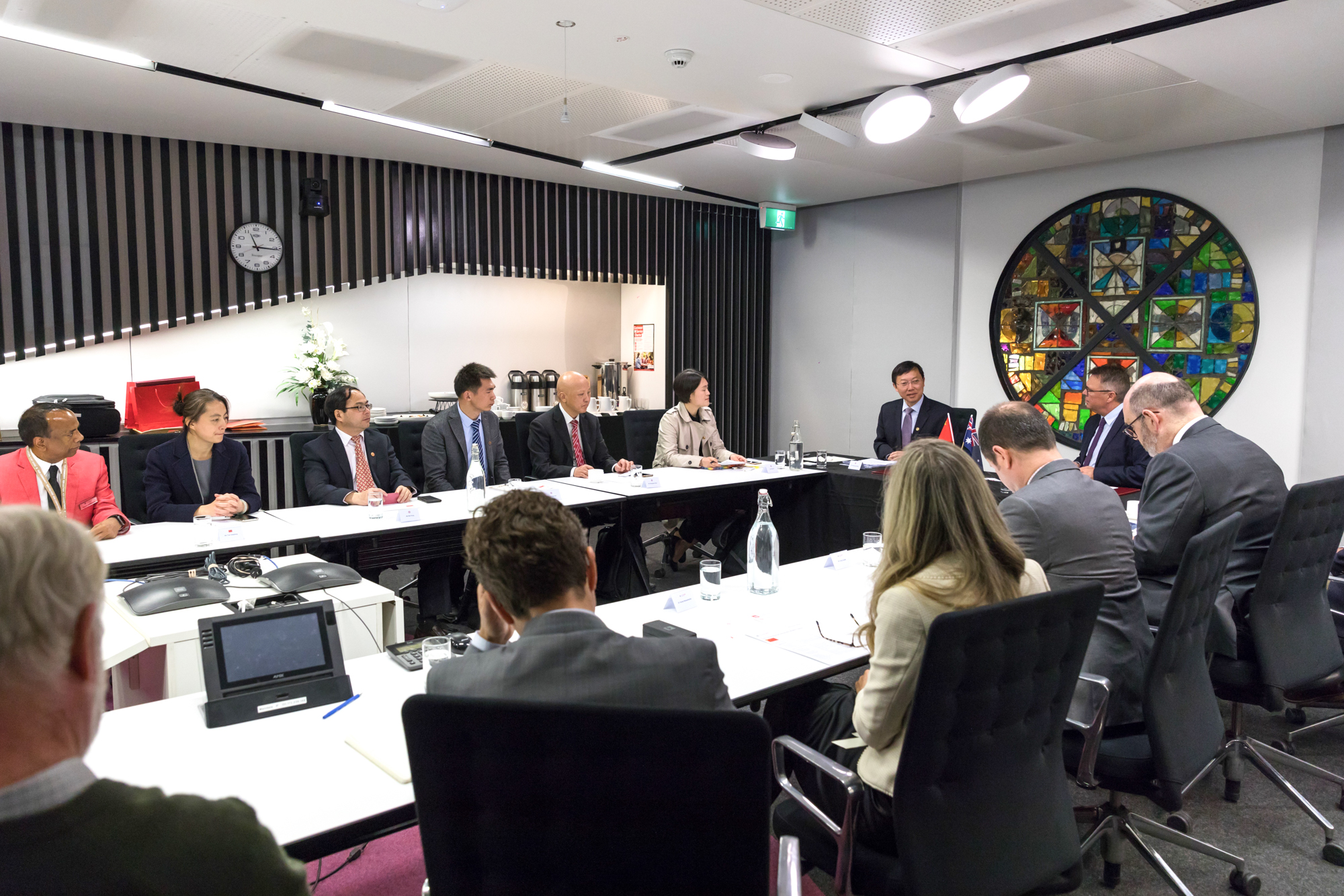 汪荣明在致辞中表示,华东师大非常荣幸可以将两校始于上世纪80年代的合作关系延展至今天这项新的合作,相信两校联合研究中心的创立将成为一个卓越的学术平台,并期待双方学者通过深度的学术交流与合作产出世界级的研究成果。John Dewar对此深表赞同,并对两校合作的不断升级和双方即将展开的多领域、跨学科合作充满期待。在随后的工作会谈中,双方就中心指导委员会的运作机制,以及率先开展科研合作的学科等议题深入交换了意见。