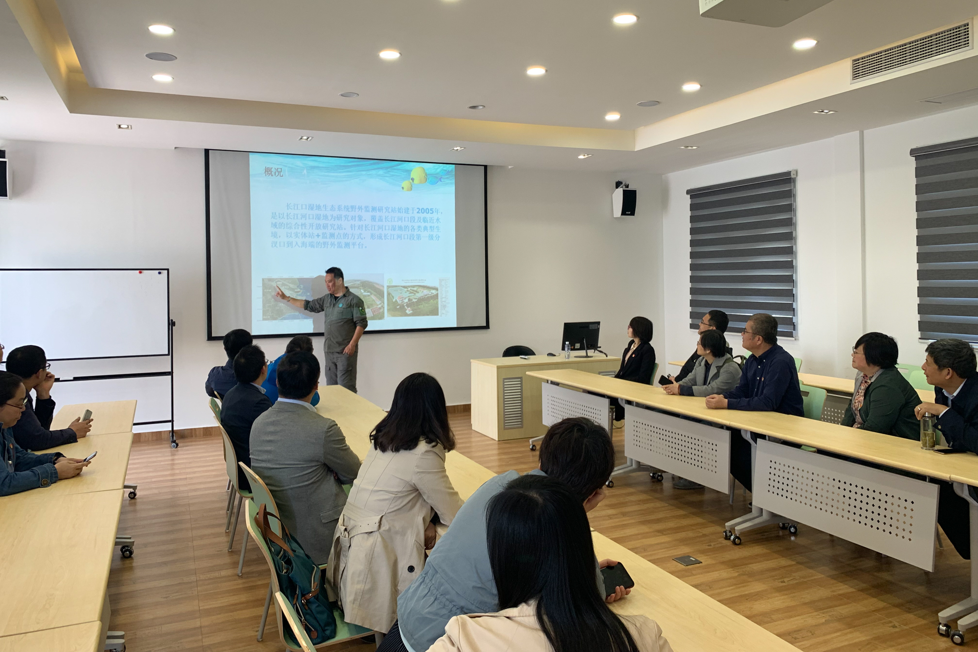 随后,大家来到我校长江口湿地生态系统野外监测研究站。观测站负责人刘文亮老师带领大家参观了湿地植物培养温室大棚、崇明本地水生动物标本间和实验室,随后以视频资料向大家讲述了我校长江口湿地生态系统野外监测研究站建设历史和建设成效。通过参观,大家深刻感受到学校长期服务崇明生态建设的重要成效以及科研工作者们不畏艰苦、扎根基层、把论文写在祖国大地上的“芦苇精神”。