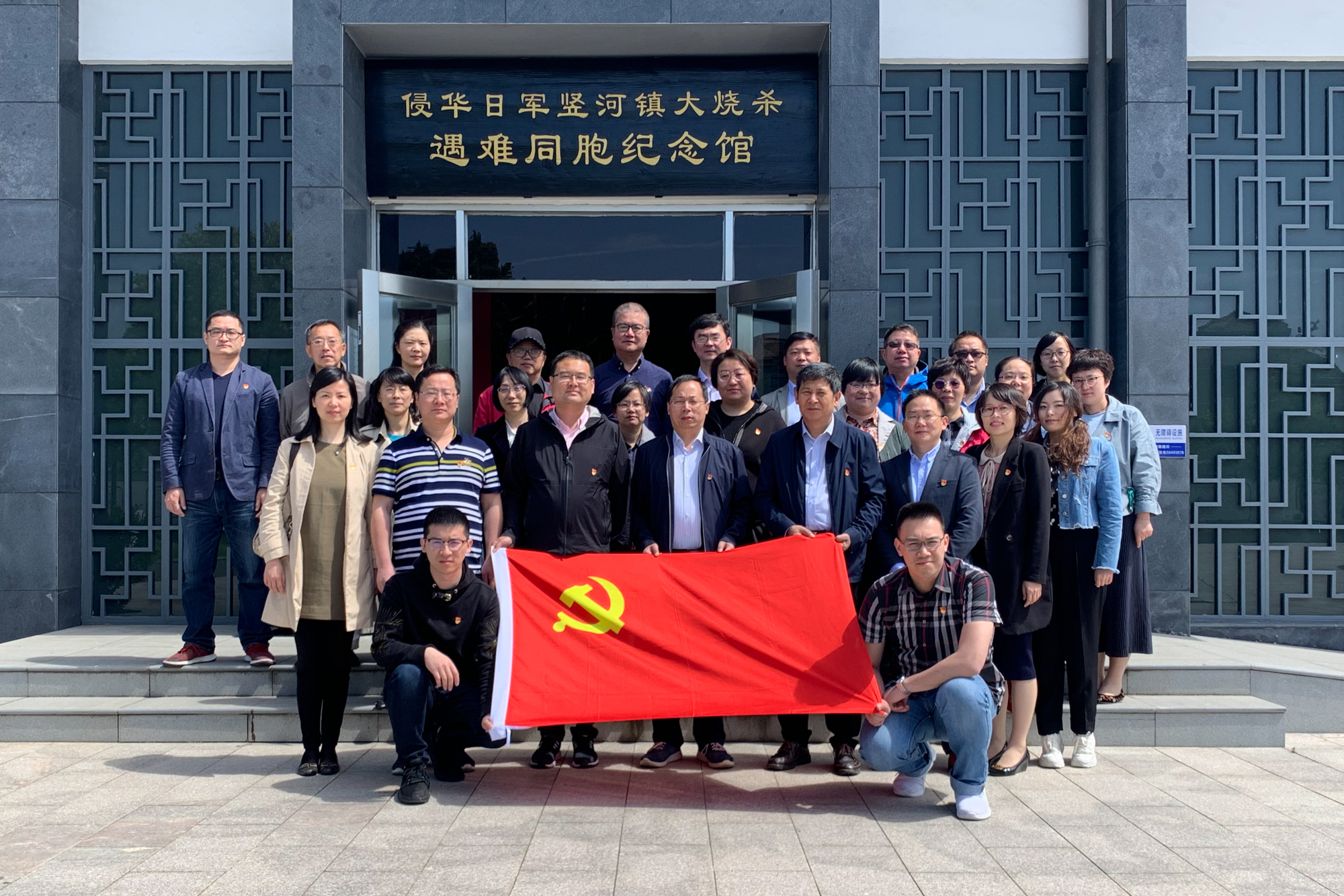 党员同志们首先参观了竖河镇大烧杀遗址。竖河镇大烧杀遗址占地面积5.3亩,内设竖河镇大烧杀遇难同胞纪念碑、3000平方米祭扫广场和300平方米的侵华日军竖河镇大烧杀遇难同胞纪念馆。纪念馆由“序厅”“全国战火点燃”“崇明抗战”“竖河镇大烧杀”“抗战胜利”“尾厅”等六部分组成,展示了大量留存的历史资料图文和各种历史遗迹。馆内还采用浮雕、场景模拟、幻影成像、多媒体视频、沙盘复原等表现形式,展现抗战时期日本侵略者在崇明所犯下的滔天罪行和崇明人民奋起反抗侵略者的史实。通过工作人员解说以及丰富的历史图片、文字和视频资料展示,大家深刻了解到在上世纪30、40年代中国面临亡国灭种的历史岁月中,崇明人民曾经经历的悲惨历史,更深刻感知到崇明人民奋起抗击侵略者的伟大精神。在参观现场,党员同志们一种“天下兴亡、匹夫有责”、建设国家和复兴伟大民族的历史责任感油然而生。