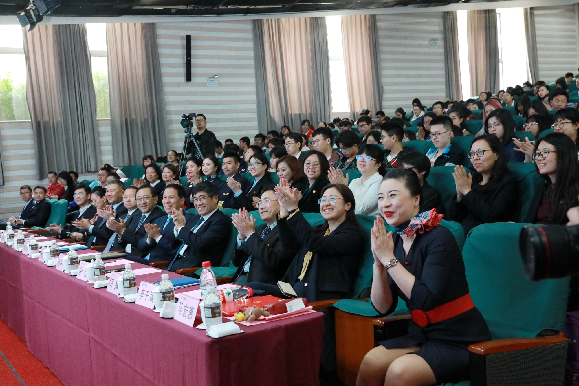 报告会上,东航集团党组副书记唐兵代表东航集团向华东师大师生赠送了最新的空客350飞机模型,表达了对同学们奋发进取,搏击蓝天的美好祝愿。
