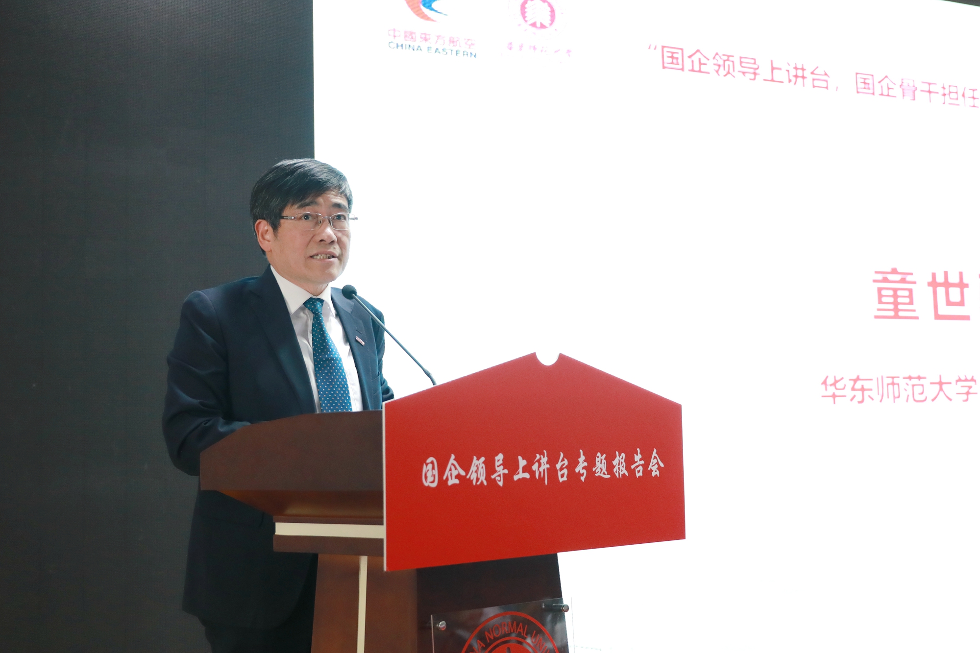 童世骏在致辞中指出,华东师大与东航集团结对开展“国企领导上讲台、国企骨干担任校外辅导员”活动,是双方深化校企协作、凝聚育人合力的重要举措。东航集团作为全球领先的国有骨干航空运输集团,始终本着严谨高效、激情超越的企业精神,积极投身社会事业发展。东航人身上所展现出的报国情怀、奉献品质、创新创业精神,既是中华民族时代精神的具体体现,也是高校思政工作的重要资源。希望双方以此次活动为契机,共同凝聚育人合力,使广大青年学生进一步学习企业精神,感受榜样力量,成为具有家国情怀、国际视野,崇德向善、见贤思齐的新时代青年,为建设中国特色社会主义贡献智慧和力量。