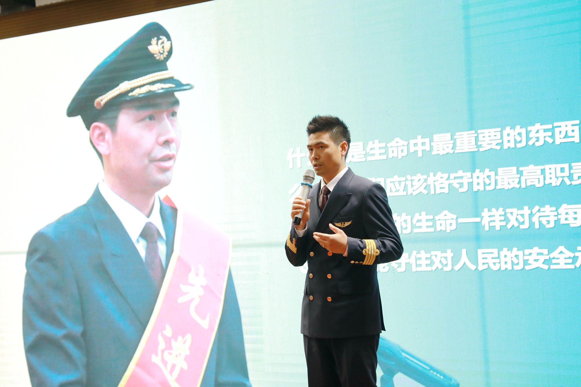 通过英雄机长何超驾机紧急避险的案例,以3秒钟、19米、443条生命的数据,结合民航行业的特点,讲述了国有企业如何落实习近平总书记对民航业和对安全工作作出的重要指示,向青年学子们讲述了国企对人民生命财产高度负责的精神。他说,只有像对待自己的生命一样对待每一次飞行,才能守住对人民的安全承诺,以人民为中心、为生命担当是国有企业的应尽之责。