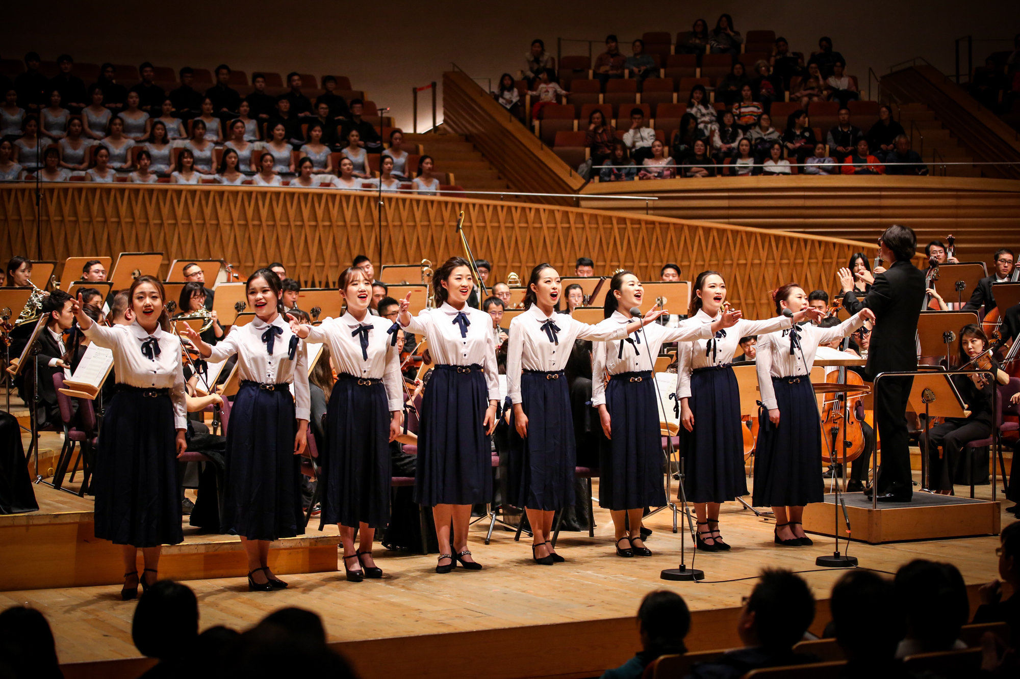 来现场观看演出的大约有500多名华东师大师生,这场专业演出带领师生从校园里的音乐厅走向黄埔江畔的专业级音乐殿堂,可谓一次别具匠心的策划。