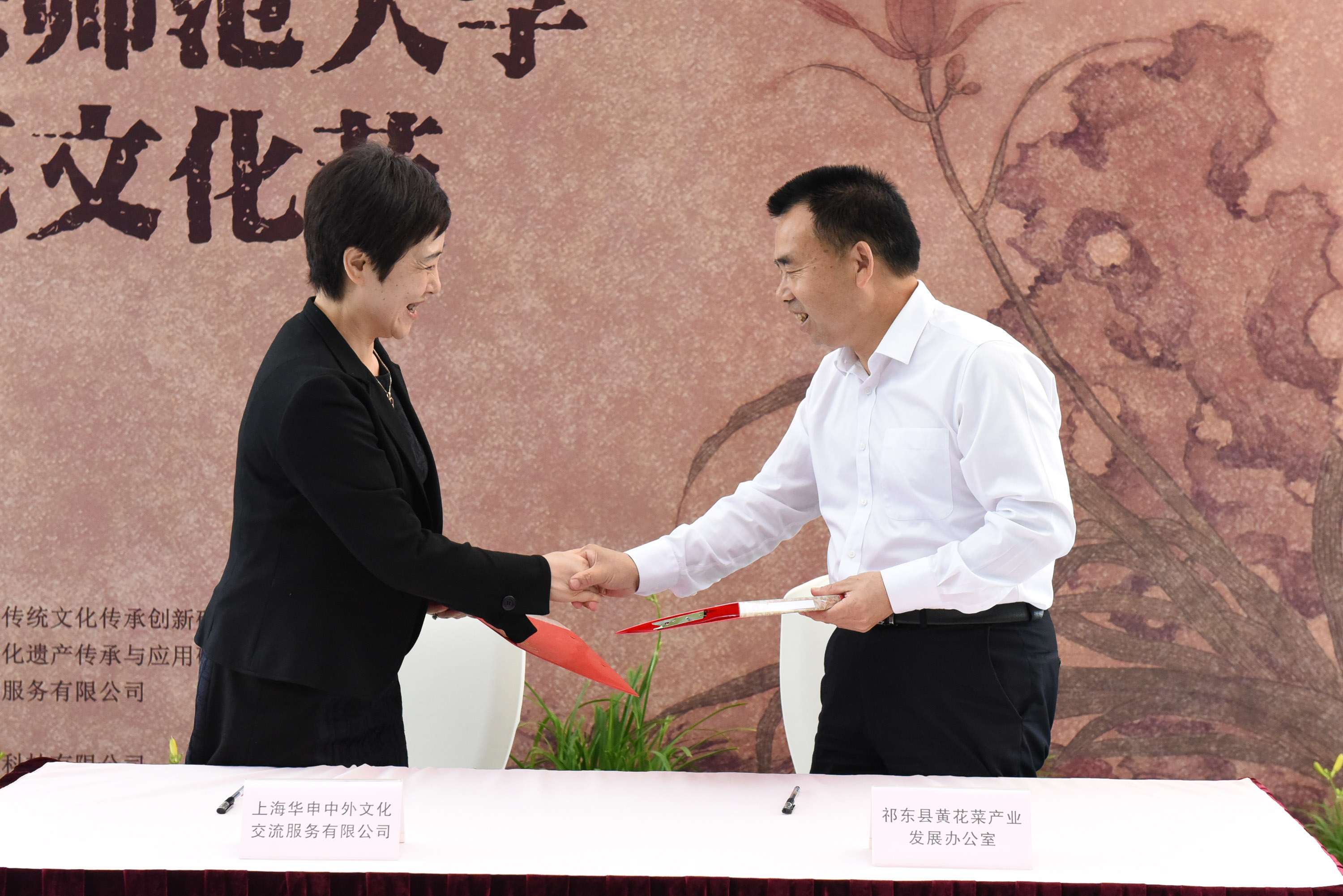 上海华申中外文化交流服务有限公司总经理韩松美与湖南省祁东县人民政府、国家食药同源科创联盟黄花菜分委会主任李满元签署框架协议