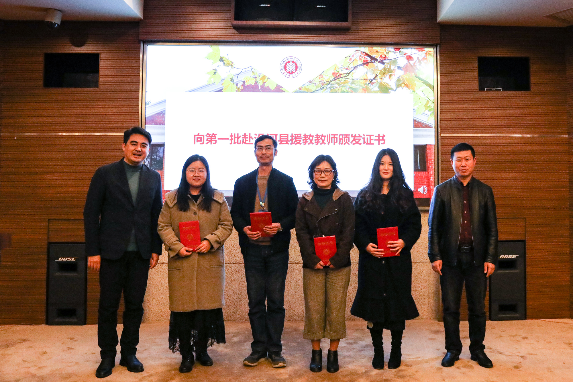 随后,王宏舟向华东师大附属东昌中学教师顾荷秀、华东师大附属周浦中学教师顾兆君、华东师大第二附属中学教师高倩倩、华东师大教师教育学院研究生路依凡等第一批赴沿河县援教教师颁发证书,祝贺他们圆满完成支教工作。