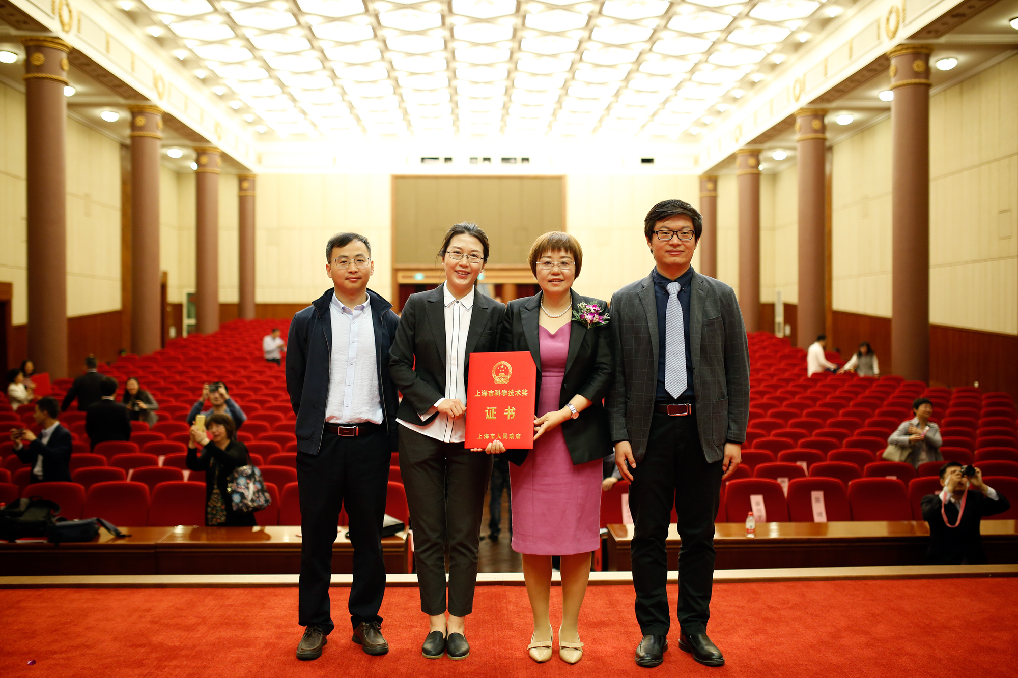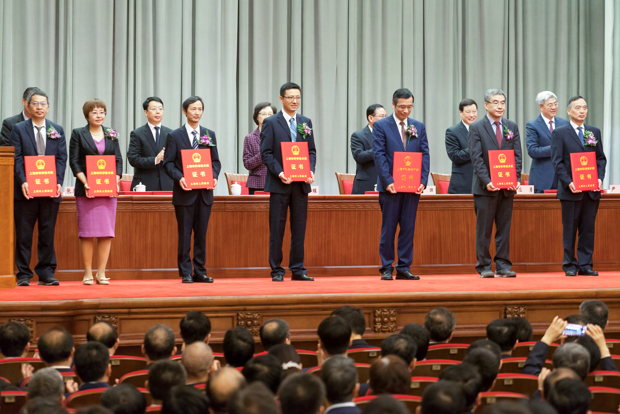 5月15日上午,2018年度上海市科学技术奖励大会在上海展览中心友谊会堂召开,隆重表彰为上海科技事业和现代化建设作出突出贡献的科技工作者,3245澳门新莆京共有四个科研团队获得奖励。由华东师大化学与分子工程学院田阳教授团队牵头,联合同济大学共同完成的《氧化应激过程的分析新方法与分子机制研究》项目荣获自然科学奖一等奖;由经济与管理学部包起帆教授团队牵头,联合上海秀派电子科技股份有限公司,上海慧物智能科技有限公司共同完成的《融合北斗的集装箱物流跟踪与监控技术及国际标准制修订》项目荣获科技进步奖一等奖。在奖励大会上,第一完成人田阳教授、包起帆教授作为获奖代表,走上主席台接受颁奖。
