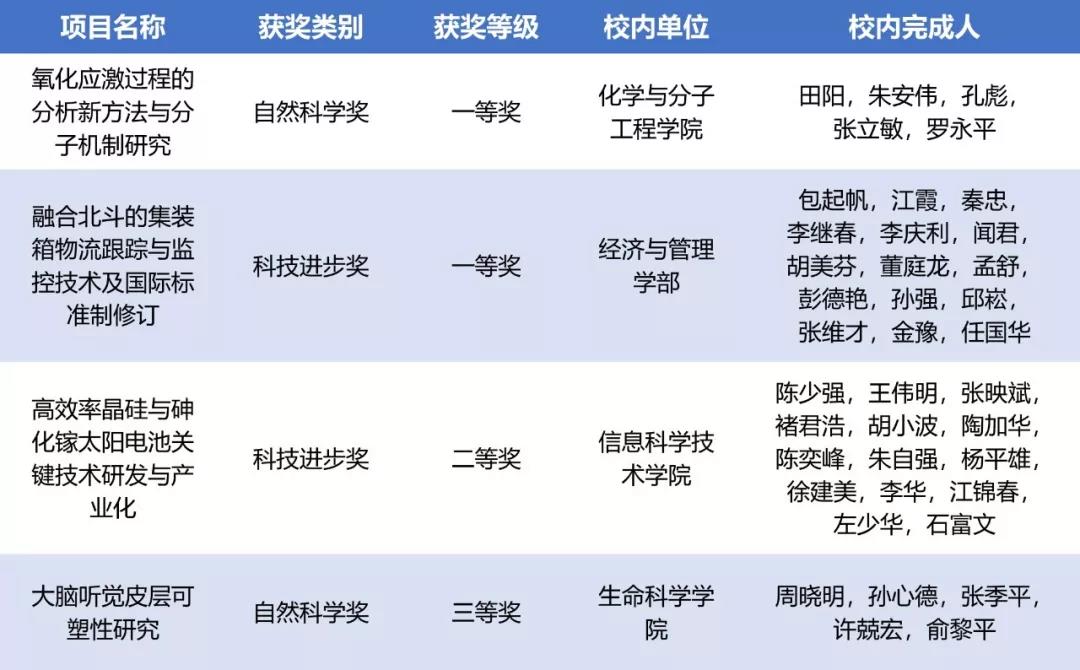 此外,华东师大信息科学技术学院陈少强教授团队完成的《高效率晶硅与砷化镓太阳电池关键技术研发与产业化》项目获科技进步奖二等奖,生命科学学院周晓明教授团队完成的《大脑听觉皮层可塑性研究》项目获自然科学奖三等奖。