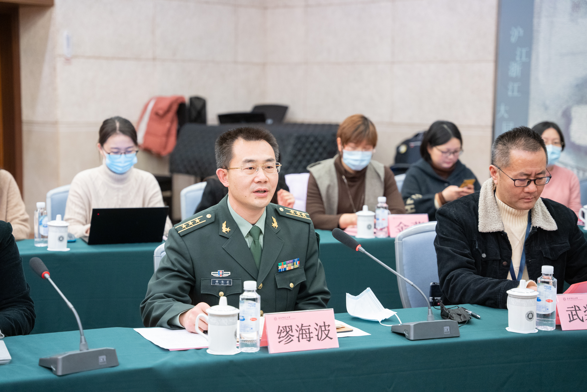随后,缪海波对2021年征兵工作作动员部署讲话。他回顾了华东师大2020年征兵工作在疫情影响下,克服重重困难,创新工作方式方法,取得的良好成效。“强国必须强军”,缪海波强调,2021年将开启“一年两征”的工作模式,各单位要扛起责任,切实增强征兵工作的使命担当;开展深入宣传,拓展宣传渠道、创新宣传方式,加强对征兵相关政策的宣传力度;把准节点,推进征兵各项工作有序推进。