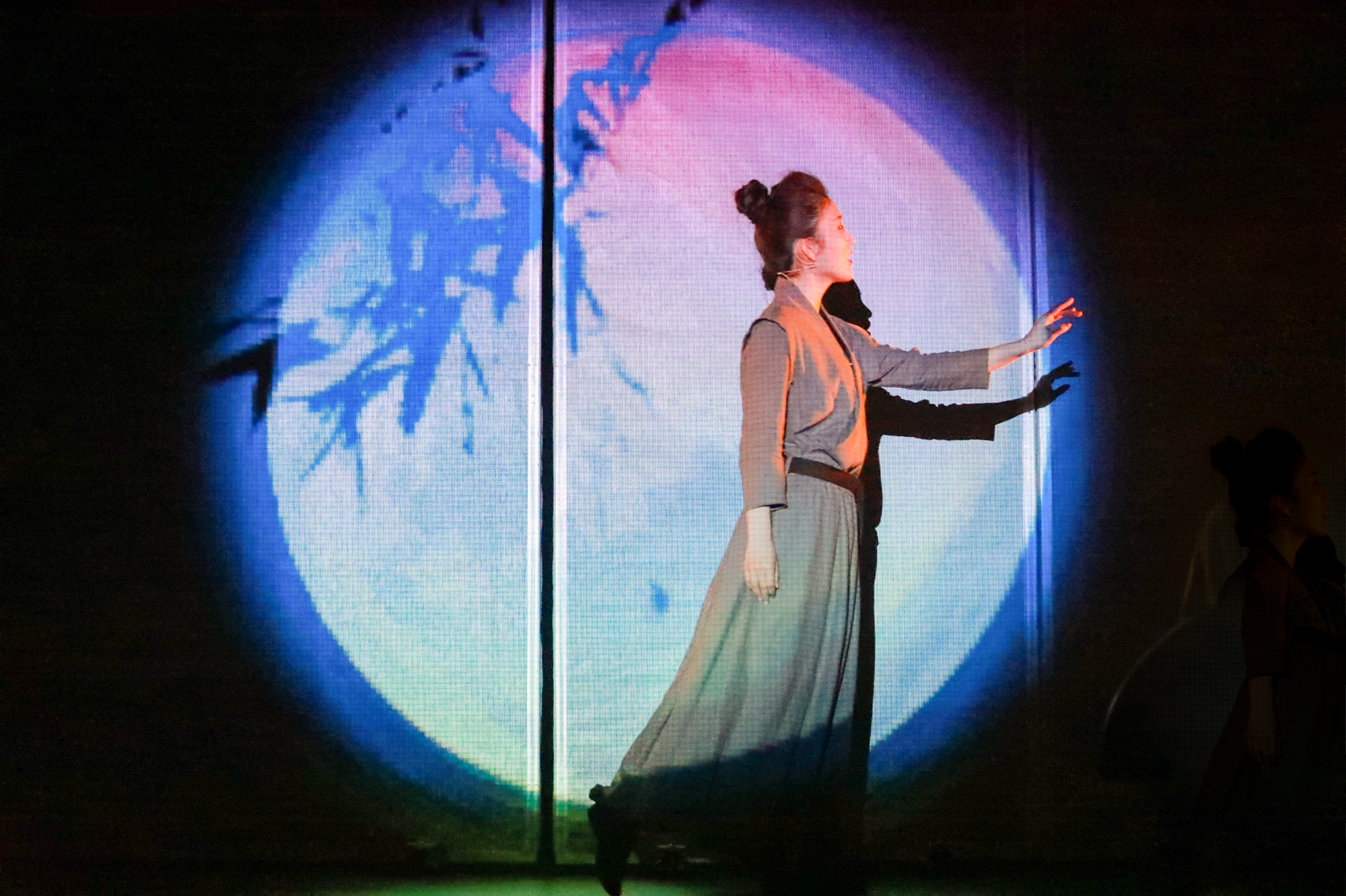 这部舞台剧以流传千年的中国传统爱情故事为蓝本,通过新颖的西方视角演绎了一出别开生面的“白娘子传奇”。演员们有着传统戏曲扮相,又在表演中融入了大量动感的现代化的肢体语言,一个动作、一个眼神都有着极强的感染力,热烈与内敛碰撞,现代与古典交融,现场观众或喜或悲、深深沉浸在这场视觉和听觉的美妙之旅中。该剧的舞台布置与造景同样出彩,舍弃了一般舞台剧使用的假山假石、屏风等笨重琐碎的道具,舞台上仅留几扇白幕,在这宛若国画画纸的投影白幕上,山水、游船、端午龙舟、雷峰塔等景象逐一显现,在方寸舞台之上展示了壮阔的古寺与湖山。遍布舞台的浓墨重彩勾勒出一幅幅动人的水墨画,为演员的表演提供了一个大气而绚丽的场景。