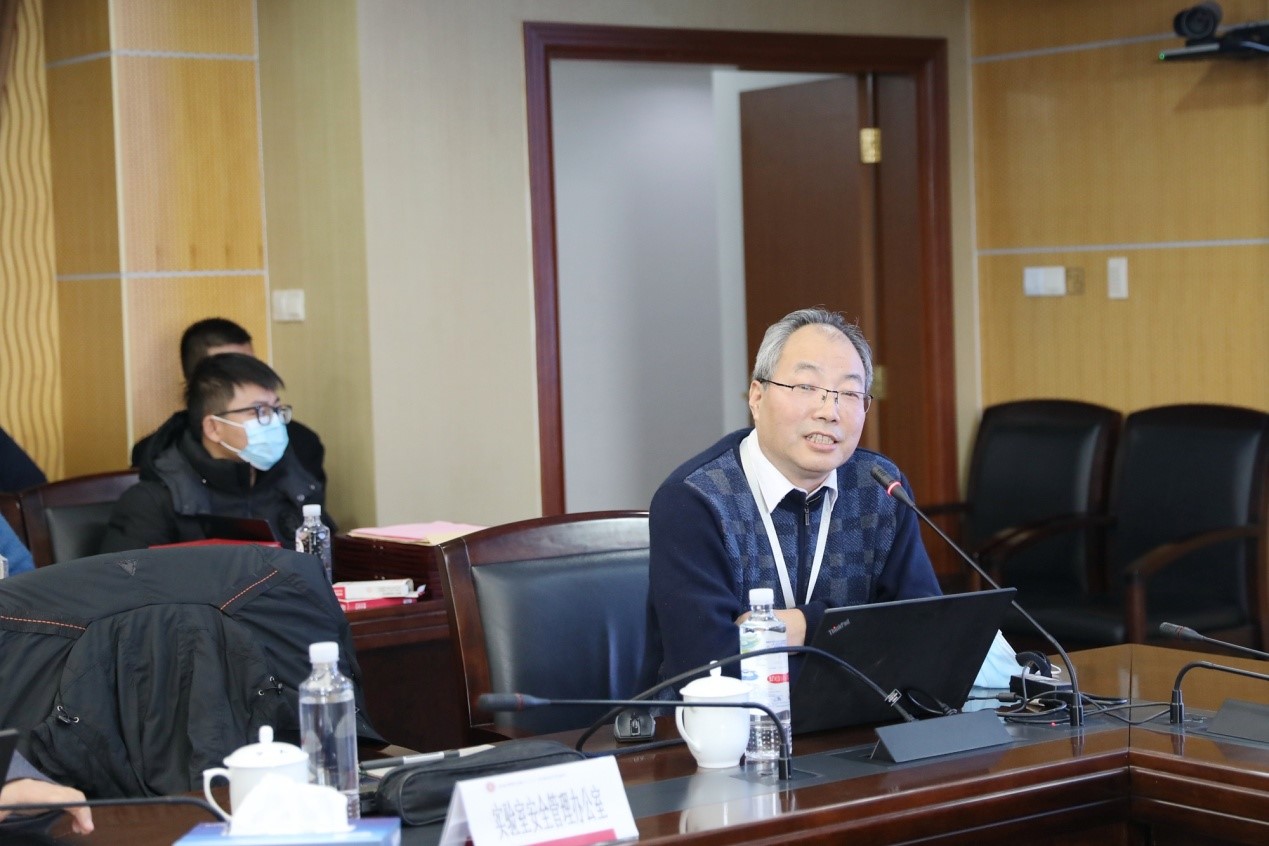 后勤保障部部长赵健、实验室安全管理办公室主任金之诚、保卫处副处长冯杰总结汇报2020年安全工作