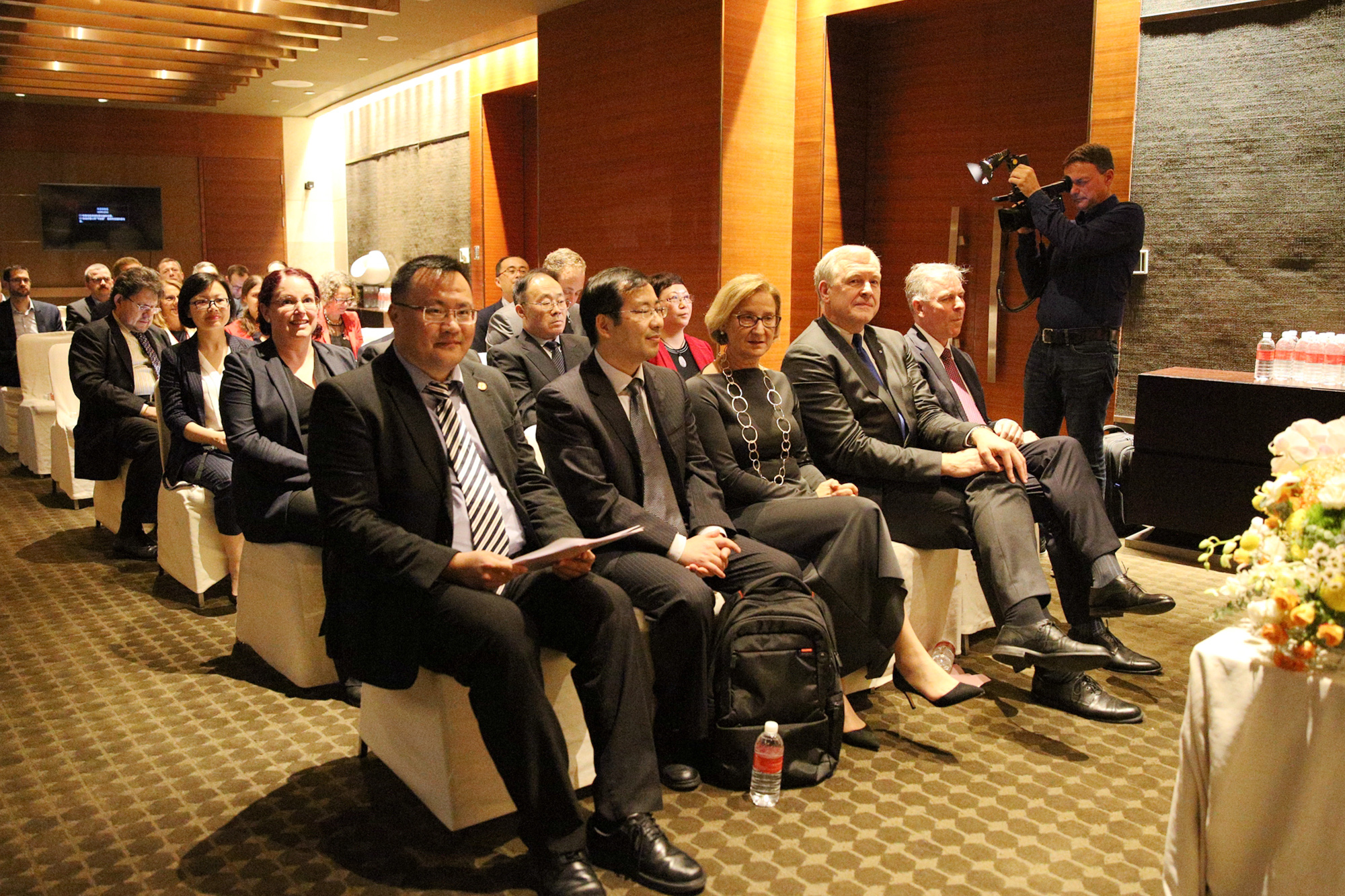 华东师大党委书记童世骏与克莱姆斯多瑙大学校长分别致辞并代表双方学校签署合作备忘录。童世骏表示,中奥关系源远流长,1971年建交以来,双方在包括教育和科技等诸多领域开展了广泛的合作,华东师大非常荣幸能够在推动中奥教育、科技和人文等领域交流方面做出自己的贡献。目前,华东师大与包括克莱姆斯多瑙大学在内的多所奥地利大学开展了合作。如今,“一带一路”倡议更为双方教育科技事业发展带来新的机遇。此次谅解合作备忘录的签署是双方合作的新开端。童世骏衷心希望通过双方的深入合作,共同助力中奥两国人文交流与教育发展。