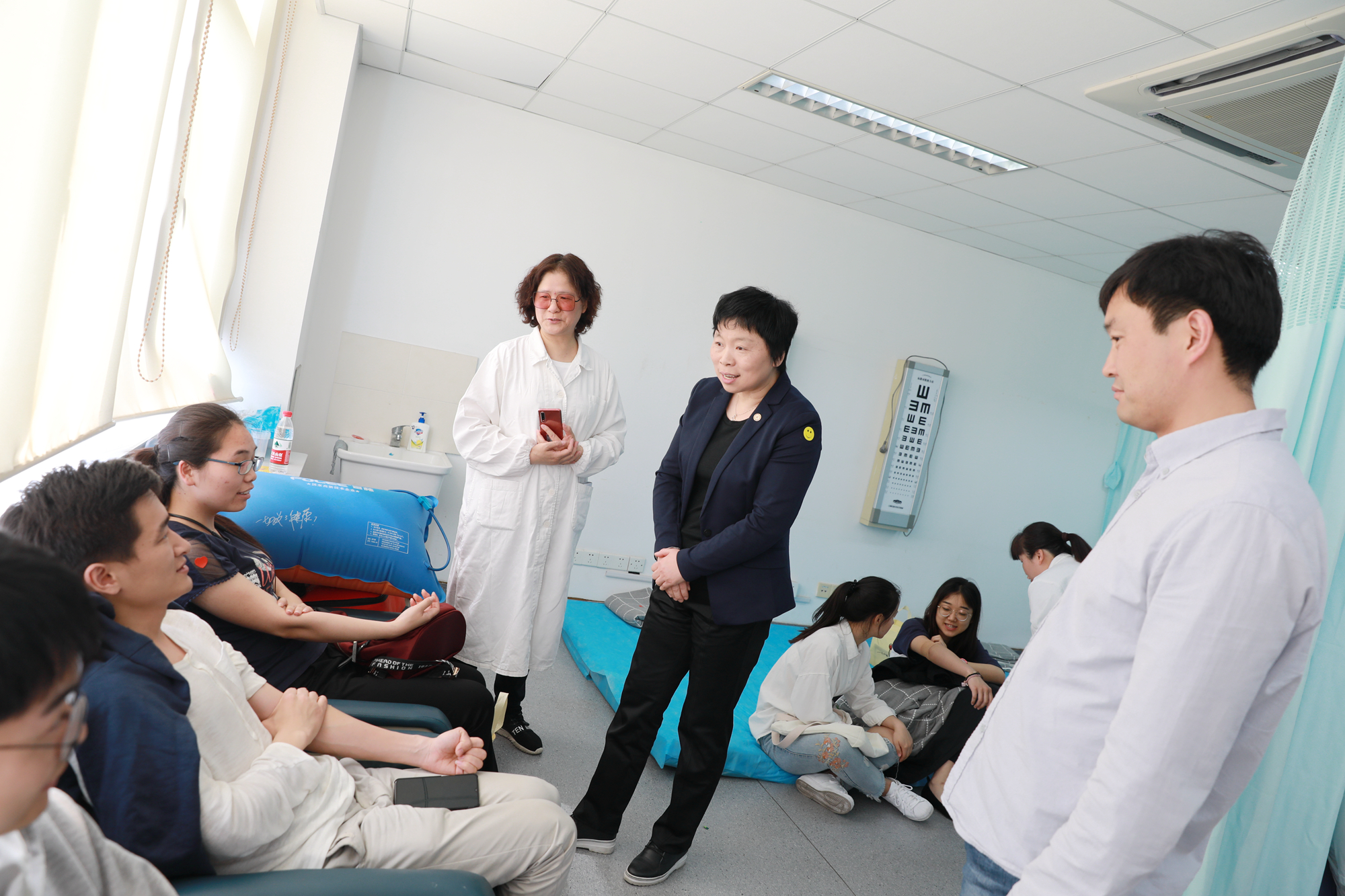 “携手你我、无偿献血、让爱传递”,5月5日上午,我校无偿献血活动在闵行校区校医院拉开序幕。校党委副书记杨昌利、副校长戴立益到现场看望慰问献血师生,询问身体状况,叮嘱献血后注意休息。